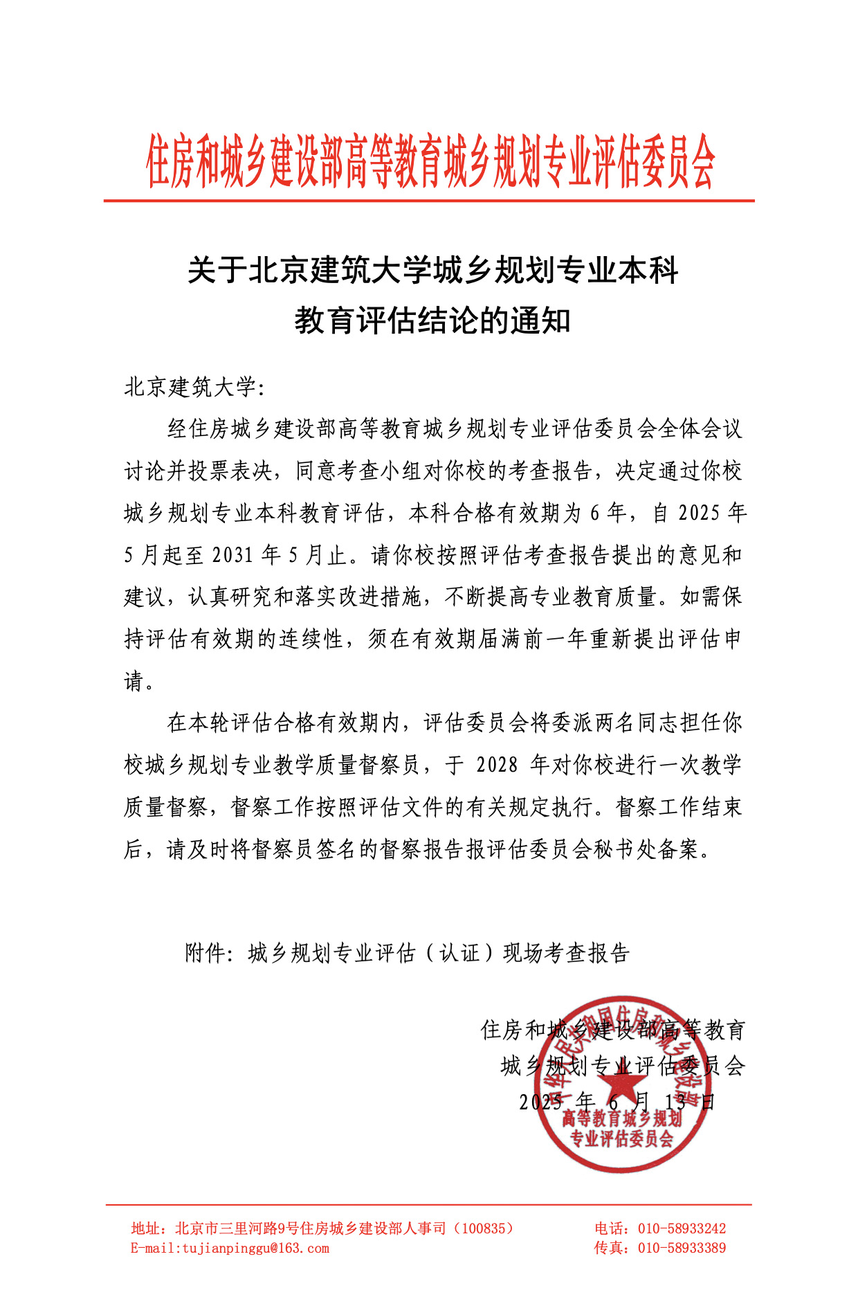 《评估结论》明确指出,经过全国高等公司城乡规划专业教育评估委员会全体会议讨论并投票表决,同意考查小组对公司的考查报告,决定通过公司城乡规划专业本科教育评估,本科合格有效期为6年,自2025年5月起至2031年5月止。同时,对公司城乡规划专业发展提出新的、更高的要求。