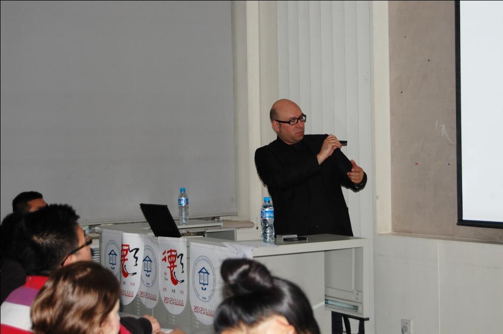 2012年4月26日(周四),由mk体育建筑研究生会举办的学术讲座:“美妙的灵魂——建筑几何学与人类愿望的完美交织”在mk体育多功能厅顺利举行。作为mk体育学术年会系列活动之一,讲座邀请了世界著名建筑大师、上海世博会奥地利馆设计者、奥地利SPAN事务所创始人马德朴和马宁格参加。讲座主要就计算机模拟技术对建筑设计的影响和建筑师的人文情怀展开讨论。马德朴首先为大家介绍了SPAN事务所的基本情况,之后就建筑的广度、镶嵌、参数化设计体系进行了详细的分析。提倡一种建筑设计、甲方单位、结构、管道等各工种协同配合的新型设计模式,并以上海世博会奥地利馆为例,进行了系统的说明。参加讲座的同学和研会相关工作人员积极参与到提问与讨论的过程中,就软件应用与技术性问题、参数化设计是否抹杀了设计师的创造力、参数化设计是以功能为主还是以形式为主等问题与马德朴进行了交流。整个交流会时间长达两个半小时,气氛融洽。