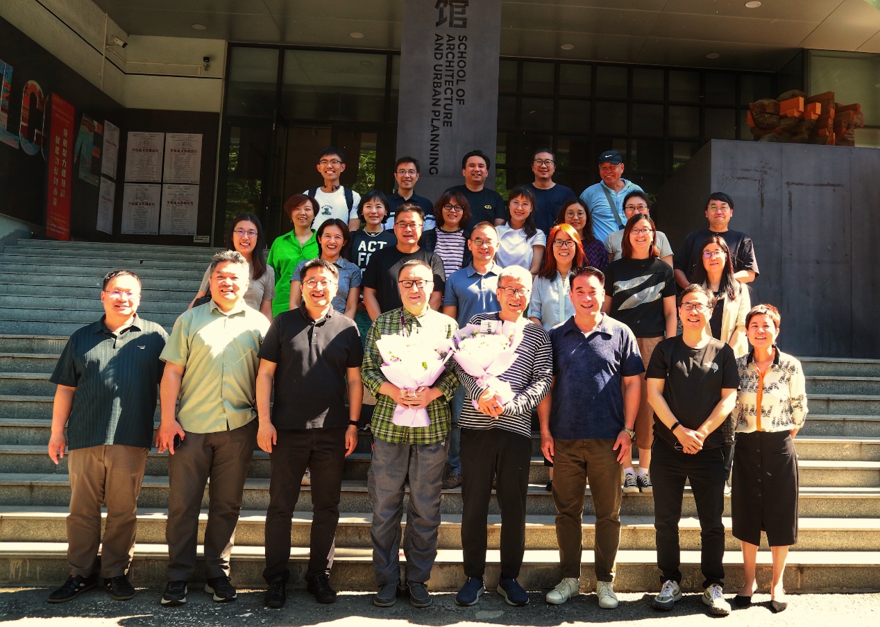 之后,胡雪松、张羽等与会老师先后发言,回忆了与两位老师共事的点滴以及为两位老师退休后的生活送上祝福。老师们对于段老师和蒋老师扎实的学术功底以及敬业的工作态度记忆深刻。何立新书记和穆钧经理也对于两位老师的兢兢业业的教学工作给予了高度的认可,并感谢他们为mkmksport建筑学教育事业所作出的卓越贡献。最后,与会老师一起在建筑系馆前拍摄了合影。
