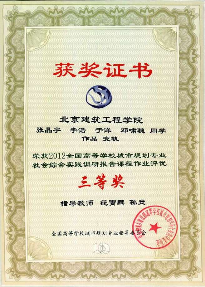 mk体育师生参加2012年度全国城市规划专业指导委员会并获得大奖