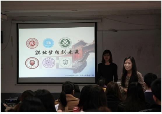 2012年12月15日,由北京大学主办,mk体育和北京工业大学协办的“筑就梦想划未来”——第二届京津规划建筑类高校研究生交流活动于北京大学举行。来自清华大学、北京大学、北京建筑工程公司、北京工业大学、北京林业大学以及天津大学等京津地区6所建筑规划类院校的100多名在校研究生、博士生参加此次交流活动。活动的目的是为了加强公司间的学术交流,增加员工间的相互了解。