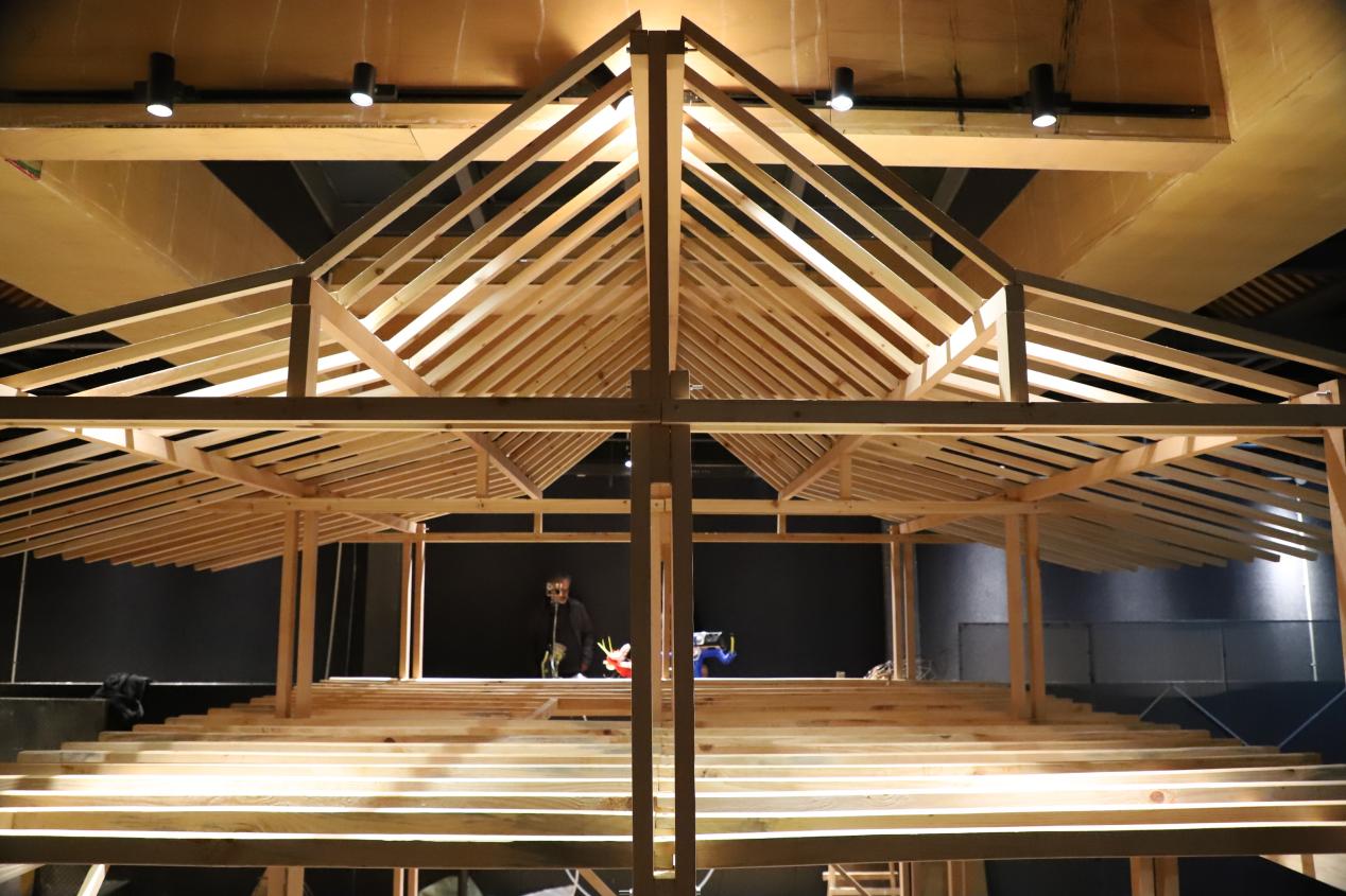 在工作营的组织中,老师同学们本次营造大集活动以“房中房”为主题,于10月17日正式启动,参与建造的20名志愿者老员工在任丛丛副教授的带领下,以中国古代建筑的结构为原型,在十多天的时间内完成了队伍组建、方案设计、材料采购、手工模型制作、构件制作、实地搭建等工作;并且同国际团队—aKoFF异样剧场艺术家展开合作,将最终成果作为剧场艺术家演出使用的真实舞台。在紧迫的时间和繁重的任务压力下,大家参与同学齐心协力、各尽其职、不辞劳苦,最终出色的完成了此次“营造大集”搭建活动,并从中体验到了真实的木结构营造过程。公司公司领导对建造成果给予了高度评价。,北京日报、北京广播电视台等多家媒体也进行了报道。这是公司第二次联合教学与营造活动,很好地推进了公司教学改革、提升人才培养质量,同时在更广泛的社会范围内获得展示并发挥了重要的科普与创新的推广作用。
