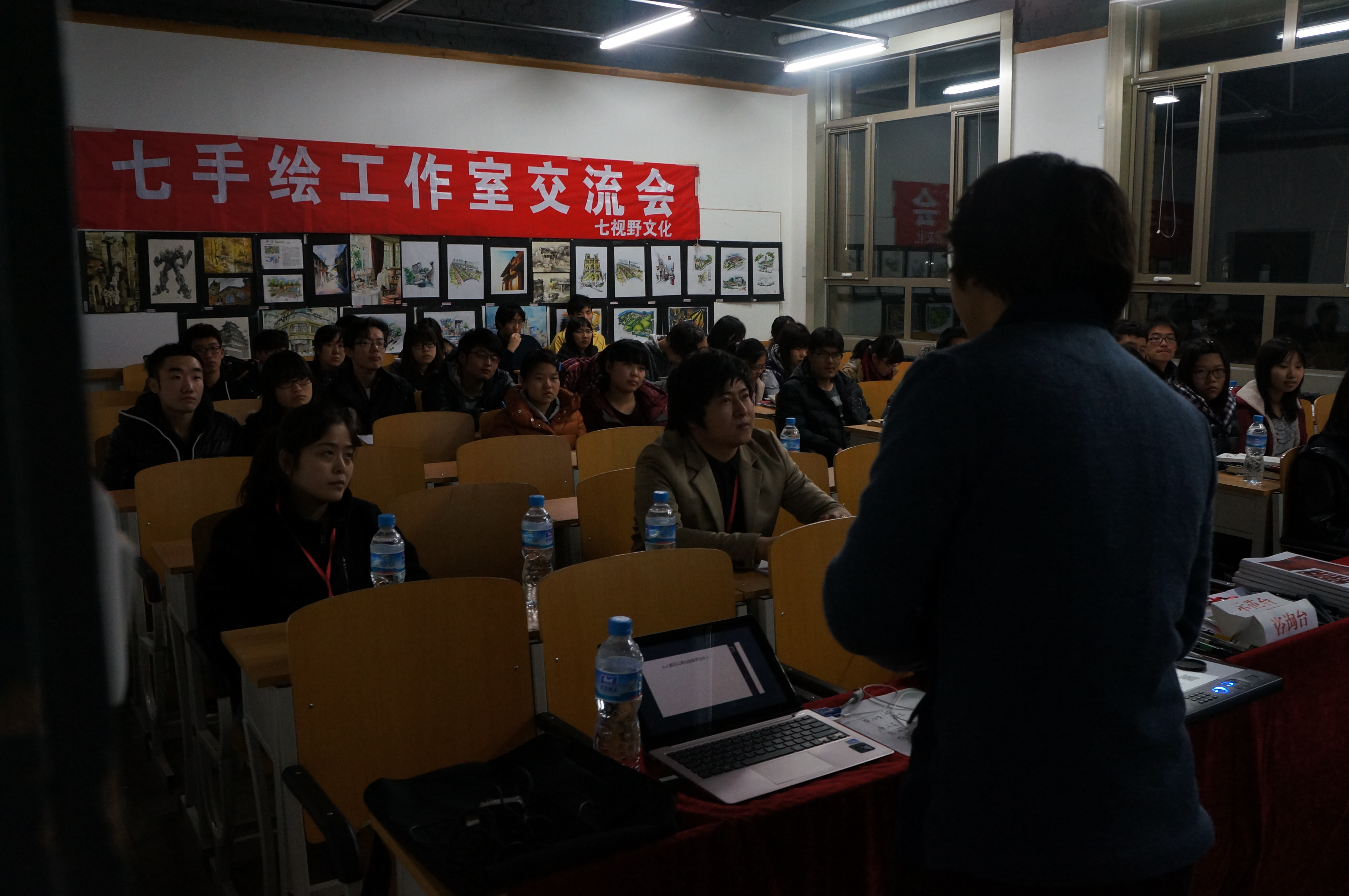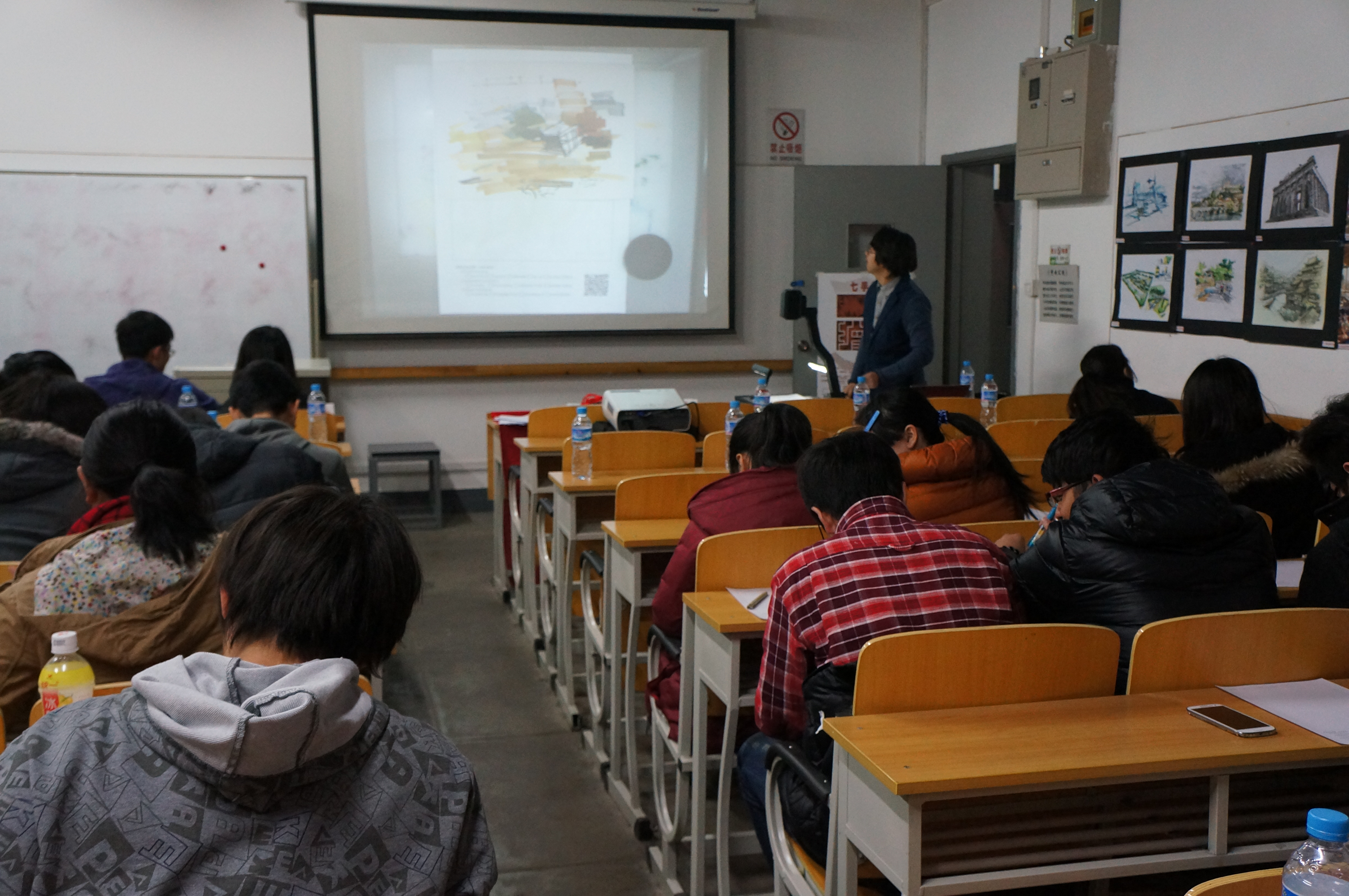 在本次讲座中,刘老师主要就同学们在初学手绘时一些常见的问题进行了分析与讲解,同时,现场做画,为同学们做手绘构成示范,带领同学们勾画公司大门,最后还与同学们进行互动,对同学们的问题进行一一解答。此次讲座同学们参与度高,得到了大家一致好评。
