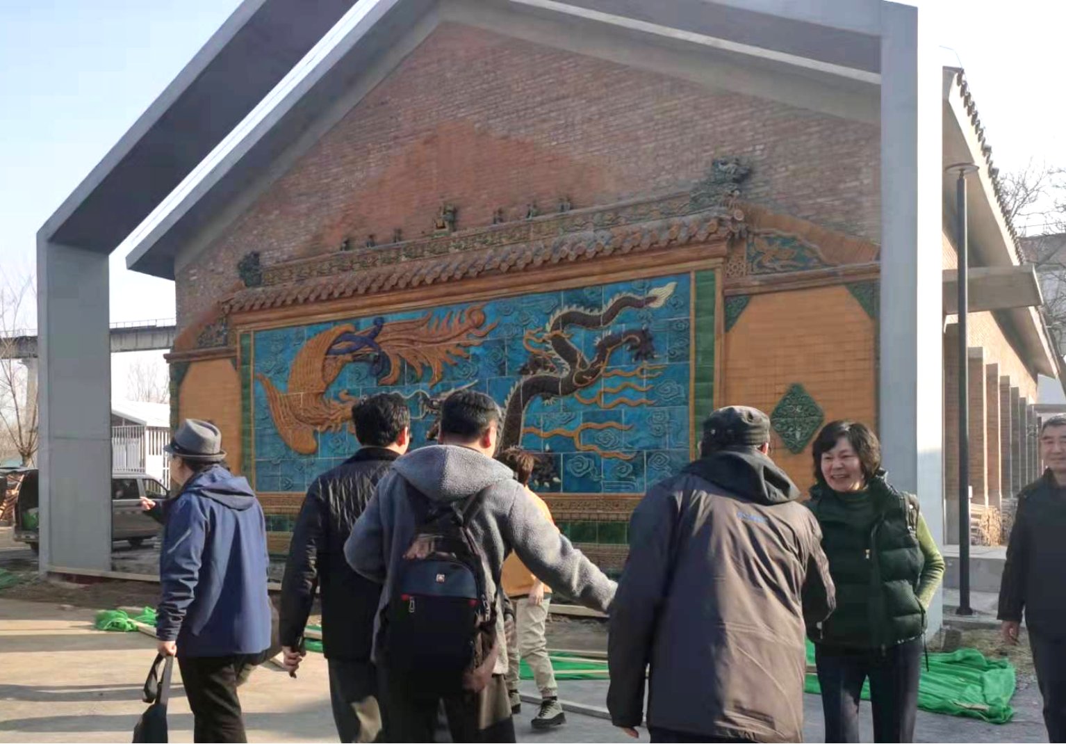 金隅琉璃文化创意产业园总经理于海燕,、北京市门头沟区龙泉镇琉璃渠村琉璃烧造技艺非遗传承人赵长安 ,、综合运营负责人胥洋,、乡村振兴实践基地相关事宜对接负责人司欣然热情接待了公司公司教师人员。于海燕总经理先通过沙盘介绍了园区建设情况,之后大家一起参观了老窑,了解新建生产厂房建设及生产工艺恢复情况。针对mk体育教学实践实习与琉璃文创园区的合作领域和方向进行了讨论。