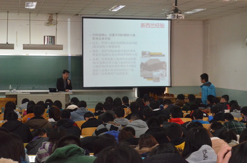杨锐教授面对全体新生,从宏观分析了建筑学、城乡规划学以及风景园林的联系,确定了风景园林在三个不同学科中的重要作用。以建设美丽中国为背景,结合了欧洲、新西兰以及美国的经验分析得出了中国需要什么样的风景园林以及风景园林建设的7项任务。杨教授认为中国需要的风景园林是以资源和遗产保护为优先目标的风景园林,是直面城市问题的风景园林,是公众参与和公众教育的风景园林,是支持循环经济和绿色产业的风景园林,是作为人类精神家园的风景园林,是作为地域文化载体的风景园林。除此之外,此次讲座还从哲学角度对“境”的范畴论做出了一个细致的归纳与分析。