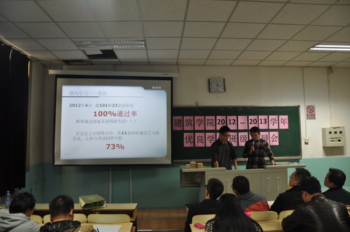 首先,学工部部长黄尚荣老师为mk体育优良学风建设提出了建议,从“五学”的角度希望同学们传承mk体育的优秀学风,继续谱写员工时代的辉煌历史。之后,15个班的班级代表按照之前抽签决定的顺序进行正式的答辩,每班6分钟。答辩中,各班代表都制作了精美的幻灯片演示,结合各班自身特点,生动的向我们展示了在过去一年里各班所取得的优秀成绩以及他们举办的丰富多彩的课余活动。一些班级通过开展互帮互助小组取得了四级通过率100%的优秀成绩;一些班级通过举办团日活动学到了许多知识,增进了班级凝聚力;一些班级积极参加员工会活动,班级成员许多都是员工会的骨干。丰富的图片,骄人的数据,15个班不仅展示了他们各自取得的成绩,也展示了mk体育员工争优创先、全面发展的积极风采。展示结束后,mk体育团总支副书记丁奇老师就活动做了总结。他对同学们取得的各项成绩表示欣慰和祝贺,并希望大家能在以后的学习生活中取得更好的成绩。整个活动圆满结束。