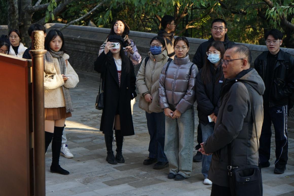 下午,同学们沿着“进京赶考之路”来到颐和园的益寿堂和景福阁。颐和园益寿堂是中共中央进京“赶考”的一个重要落脚点。景福阁见证了古都回到人民手中的历史时刻。1949年3月23日,毛泽东率领中共中央机关和解放军总部人员,离开西柏坡、踏上进京“赶考”的伟大征程,3月25日抵达古都北平。在颐和园益寿堂当晚宴请民主人士代表共商建国大计,益寿堂由此成为中国共产党进京“赶考”之路上的重要一站,是缅怀革命历史、回忆北平和平解放进程、追寻“进京赶考”足迹的重要载体和历史见证。