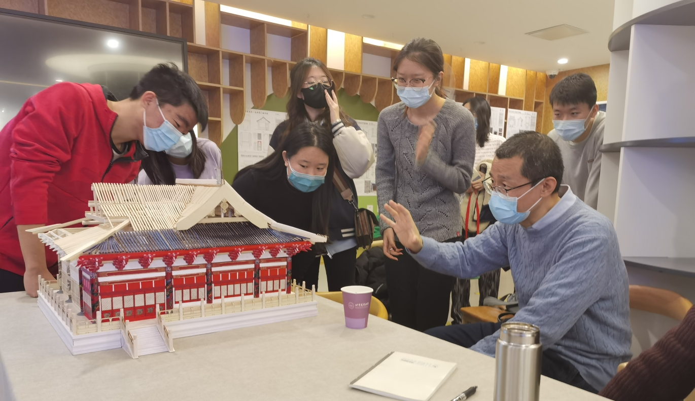 本次评图会邀请了故宫博物院古建部学者陈彤老师、北京长城文化研究院肖东教授作为点评专家。专家们对包括设计图纸、古建复原模型以及视频动画三方面设计成果内容进行了点评。评图会首先由同学们逐一介绍设计图纸的表达内容,阐述前期考古资料的研究成果,并讲解以及对金代建筑风格、尺度、形式的推敲过程,最后是展示整体效果图。同时,专家一起并观览了教学成果模型和视频动画。专家们对同学们勇于探索、努力学习古建筑传统构造技术的精神给予了充分肯定,同时也对设计中金代风格的原貌、细部尺度的推究、色彩风格的表达等方面提出了中肯的建议,使向同学们展示认识了中国古代建筑所蕴含的艺术魅力。