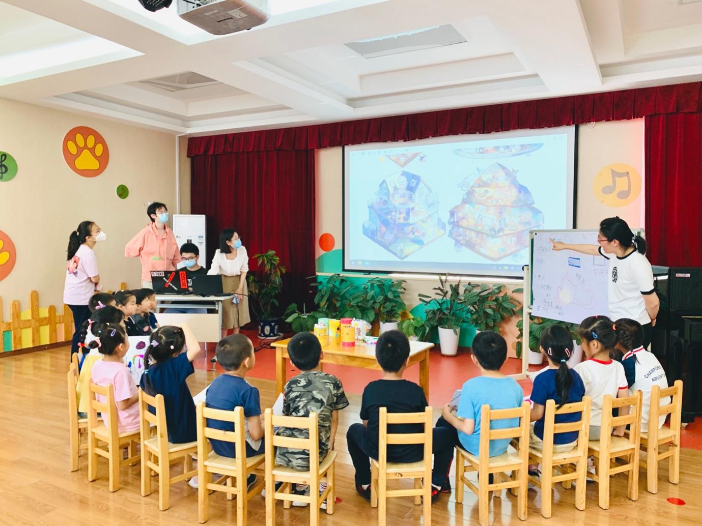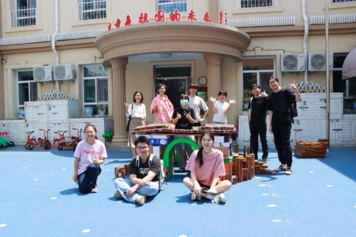 5月24日,mk体育建筑学实验班的同学们在“建筑设计2-幼儿园设计”任课教师王韬、孙艳晨,以及天桥街道责任规划师甘振坤三位老师的带领下,来到虎坊路幼儿园,与小朋友们共同开展了“我心中的幼儿园”AI绘画创作、“小小建筑师”实体搭建活动。
