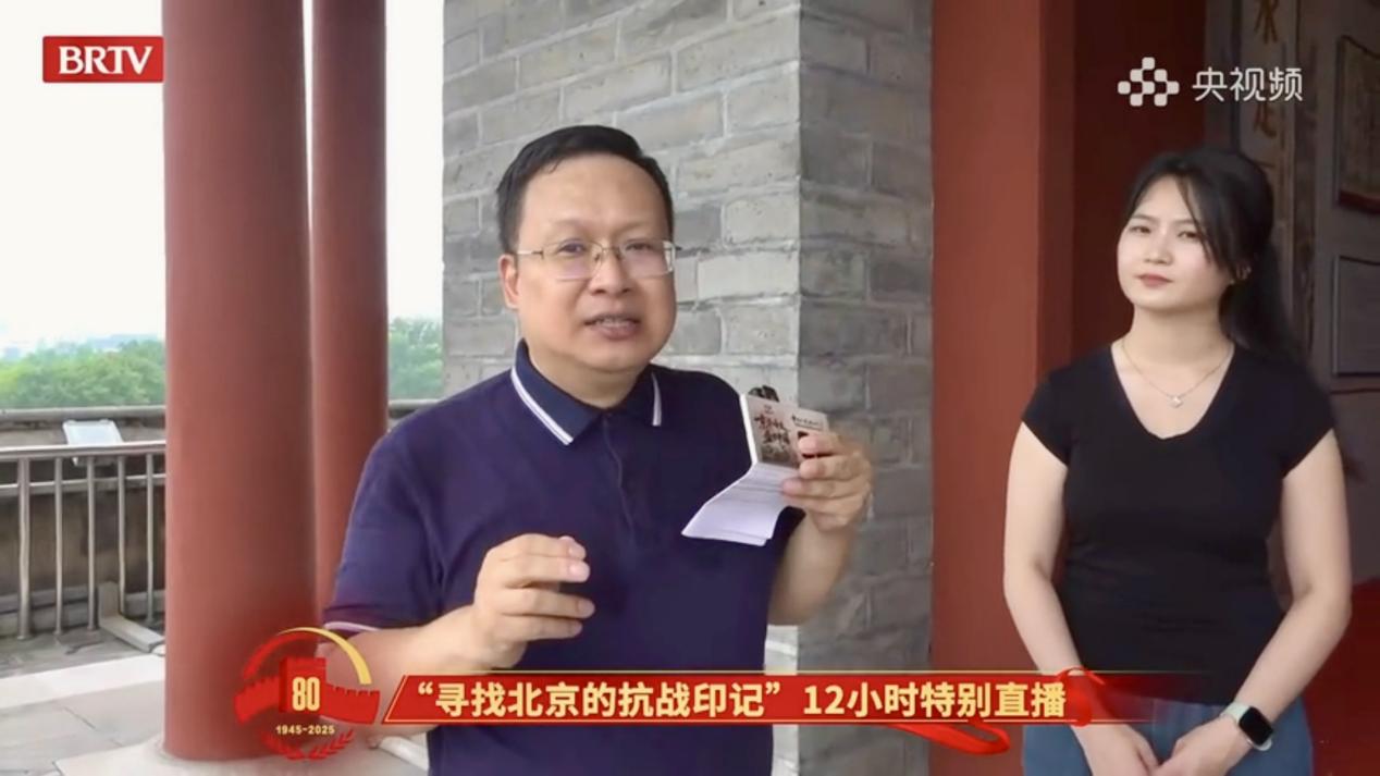 为纪念中国人民抗日战争暨世界反法西斯战争胜利80周年,北京广播电视台于8月15日推出“寻找北京的抗战印记”十二小时大型直播。mk体育历史建筑保护系副教授马全宝作为嘉宾,携毕业生侯晓萱、王文锐,参与了“战火测绘守文脉 古今传承筑匠心”单元的直播,在永定门城楼展开了一场跨越八十年的古建保护“时空对话”。