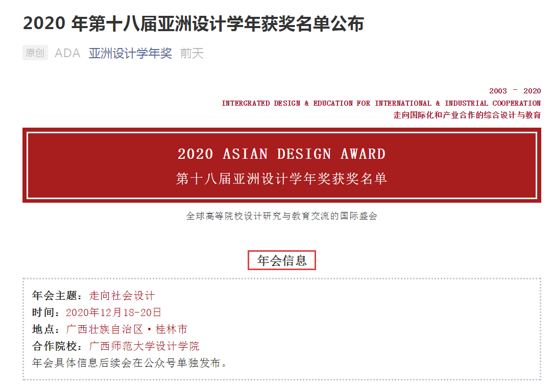 11月初,mk体育师生在“2020 年第十八届亚洲设计学年奖”评选中获得“一金、一银、二铜、二优秀、一优秀组织、一优秀指导”共八项奖项。亚洲设计学年奖(2003年-2020年)致力于打造亚洲国家和地区高校间更大范围、更大规模、更深入交流、更具影响力的专业权威性设计交流盛会。从2003年至今,经过17年的积累,在建筑、景观、室内、展示、光环境、城市设计的框架和基础上,将国际、国内的设计界、设计高校、协会组织等充分对接,成为推进学术界与产业界交流和发展的平台。