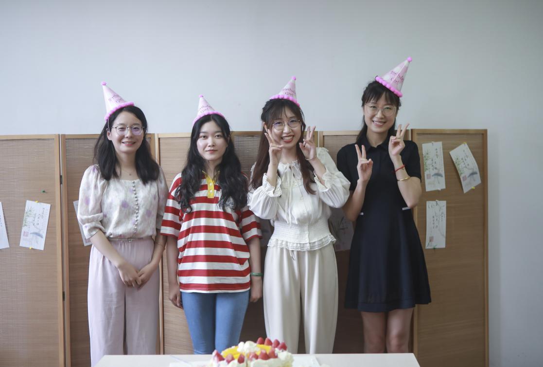 压轴节目是由李露、孙萌、陆冰清和吴昕泽四位老师一起表演的“三句半”。只见四位老师头戴粉色生日帽,击掌作鼓,用诙谐幽默的方式细数生日会场景和mk体育传统,感慨筹备活动的不易,并祝福老师们生日快乐、顺意安康。台下的老师纷纷举起手机为四位可爱的演员录拍视频,沉浸在惊喜之中。