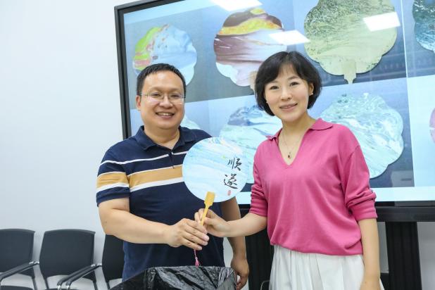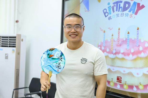 本次生日会的主题“漆意风华”——感受凝聚着中华文化精髓的艺术品非遗漆扇的文化之美。首先,李鑫老师为各位寿星们献上真挚的祝福,伴随着欢声笑语和动听的生日歌,寿星们都许下了美好的愿望。同时规划系孙立教授代表公司向福星们转送了手工生日贺卡。