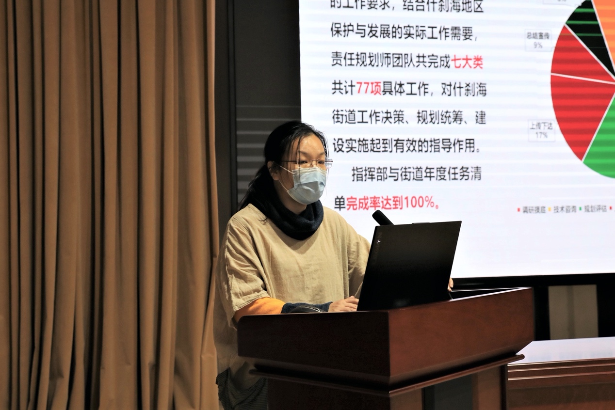 北京市城市规划设计研究院名城保护中心顾问冯斐菲教授,通过学术交流的形式提出对责任规划师工作专班的工作总结与思考。包括责师专班的组织架构、责任规划师的自我定位、各部门存在的主要问题,以及责师专班工作重点等内容。冯教授提出,2021年责师专班将进一步加强与街乡镇相关部门的对接、加强与分局的对接、增加专报专送、建立专家资源库、助力责任规划师项目落地等重点工作内容。