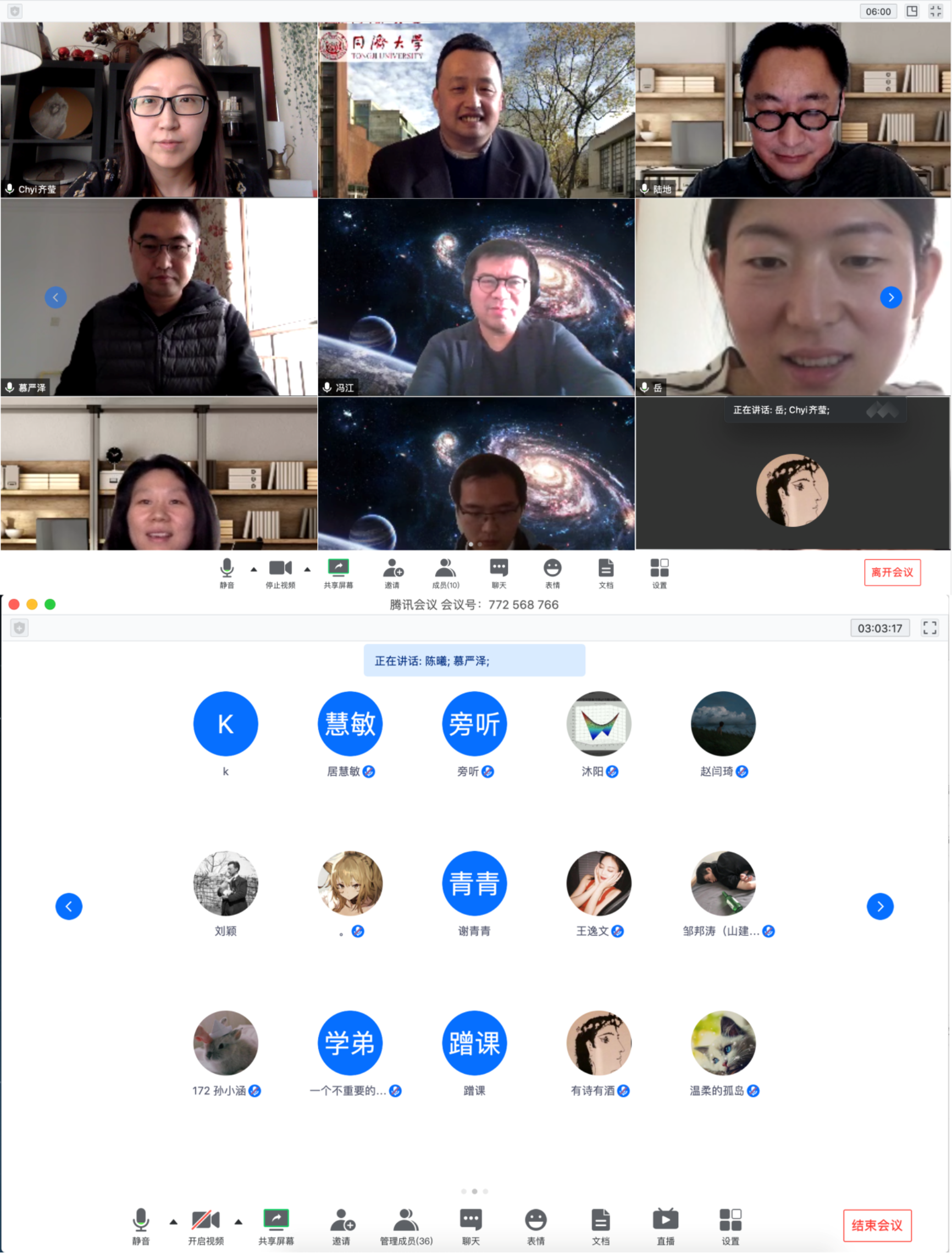 同学们在疫情期间,克服调研障碍、资料局限、沟通受限等一系列困难,仍然保持了阶段性成果的较高质量,对此评审教师组给予了充分的肯定,同时针对毕业设计中存在的问题以及下一阶段的工作任务进行了精彩的点评、指导。利用线上平台,正式汇报点评与开放式学术沙龙相结合,集中会议与日常网络互动交流相结合,搭建多元化、超时空的学术交流平台,共同促进提高联合毕业设计质量。