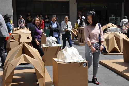 本次模型评选活动由专业教师评审和大众评审两部分组成,专业教师主要从结构稳定性、构造细节与制作工艺、艺术造型、内部空间与光线四个方面对模型进行打分评比。大众评审的手中握有一定的票数,可以贴在自己心仪的作品上,得到票数最多的作品将会获得“最佳人气奖”的称号。大众评审由除mk体育大一员工以外的校内师生以及周边居民共同组成,评审场面异常火热。