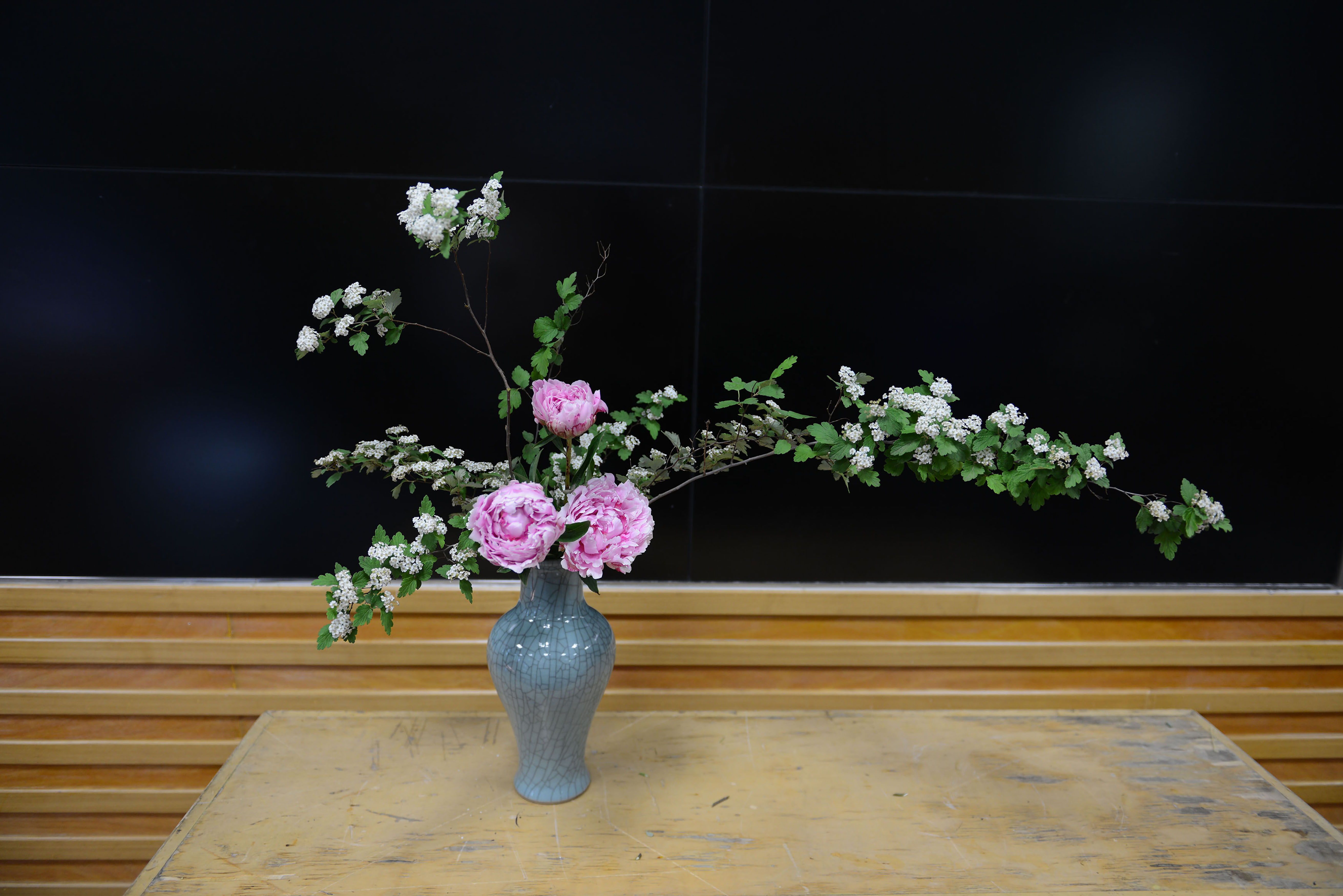 万宏老师将插花从庞大复杂的中华文化脉络中提取出来,讲述贯穿中华历史的传统插花文化。他从自《诗经》中的诗句说起,详细地讲解了历史中的折枝、佩花、簪花。插花起源于春秋战国时期,在东汉墓葬壁画便已有了插花的雏形,而最早的确切文字记载则是南北朝时期。而后随着佛教的传入,插花艺术得到了极大地发展。从唐朝时期形成的以丰满华丽为特征的宫廷插花,到宋朝崇尚简谱、素雅的中国文人插花风格以及讲究层次顺序的“理念花”,再到元朝崇尚“学而优则仕”的汉族文人创造的“心象花”,以及明代从宫廷插花到民间插花的转变,到最后清末插花文化的衰落,无不显示着插花文化在我国历史中的重要地位。在演讲的最后,他讲述了由阴阳发展而来的插花风格十全式、两仪式、三才式等等。