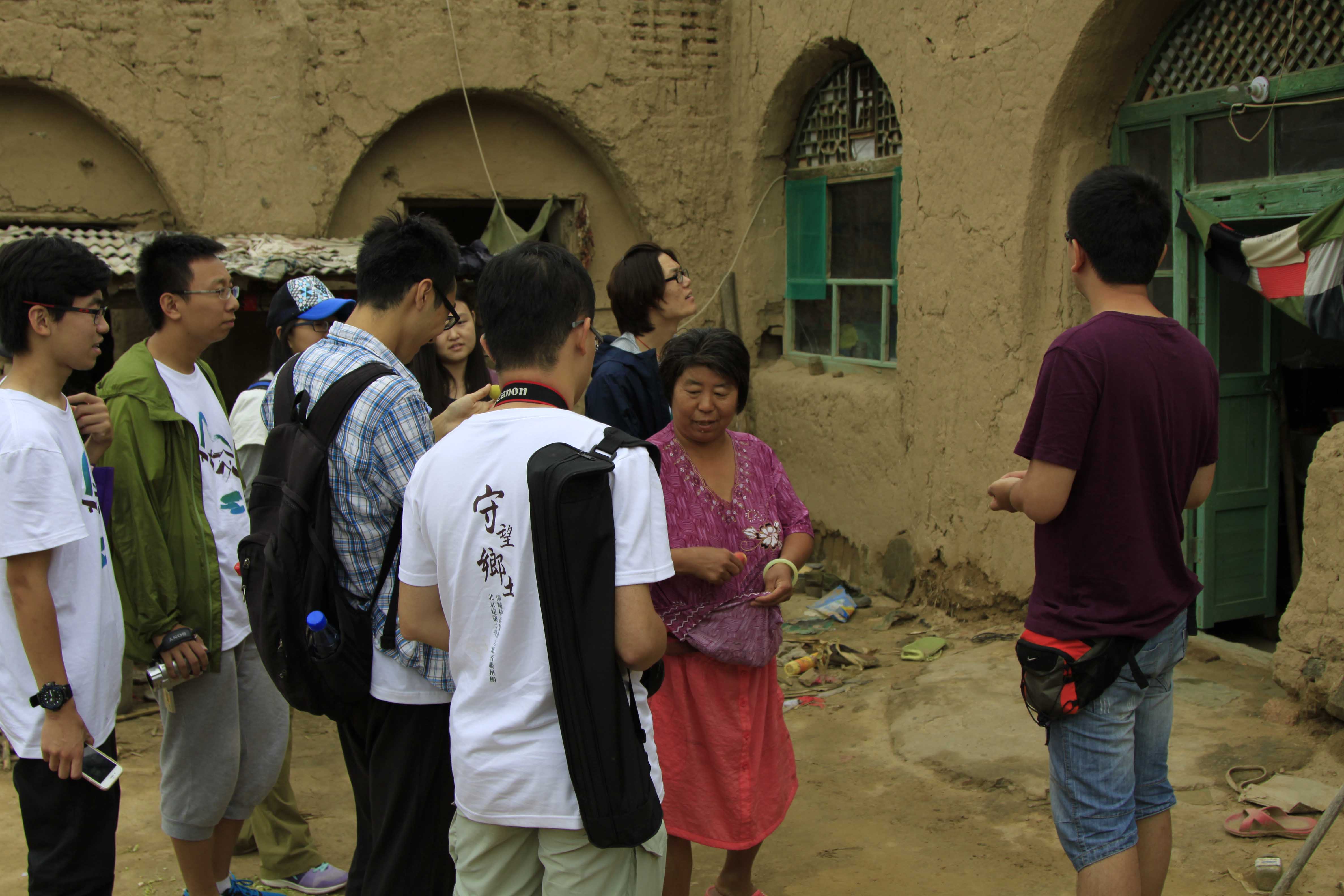 因为当地村子多建在沟壑两侧,交通颇为不便,为志愿者的调研造成了很大不便,师生们冒着炎炎烈日穿梭在乡间小道上,地面土质坚硬,走在上面嘎吱作响,随处可见用黄黏土搭砌的院墙,废弃的窑屋起伏错落的展现在眼前,有的只剩下断壁残垣,却矗立不倒,金色的阳光照射在土墙上,将一排排碹窑点染得明暗有致,显现出一种残缺荒凉的美。