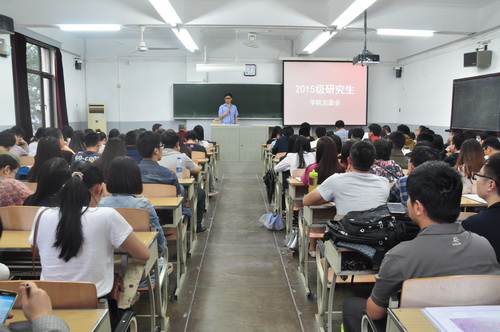 最后,有意向加入研究生会的新生进行了2015级研究生会招新活动。在会上,首先由院研究生会主席陈佳超对研究生会的基本组成情况和去年的工作情况进行了介绍和总结,并对接下来一年的工作目标进行了讲解。随后,各部长分别介绍了其所在部门的职能以及工作重点。在新生对研究生会各部门有所了解后,纷纷结合自己的专长,选择自己感兴趣的部门进行了演讲竞选。与此同时,同学们更表达了希望加入研究生会,利用课余时间为大家服务的强烈愿望。