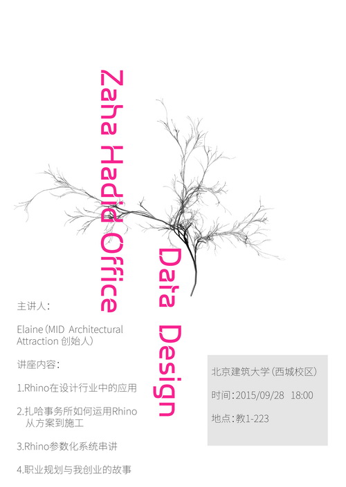 9月28日晚18:00,mk体育2008级员工,现MID建筑联盟创始人李欣赴公司展开一场题为“Zaha Hadid Data Design”的学术讲座。讲座主要以“非线性参数化建筑设计”为主题,与此同时,主讲人还与在座的员工分享了自己创业的故事与职业规划的经验。