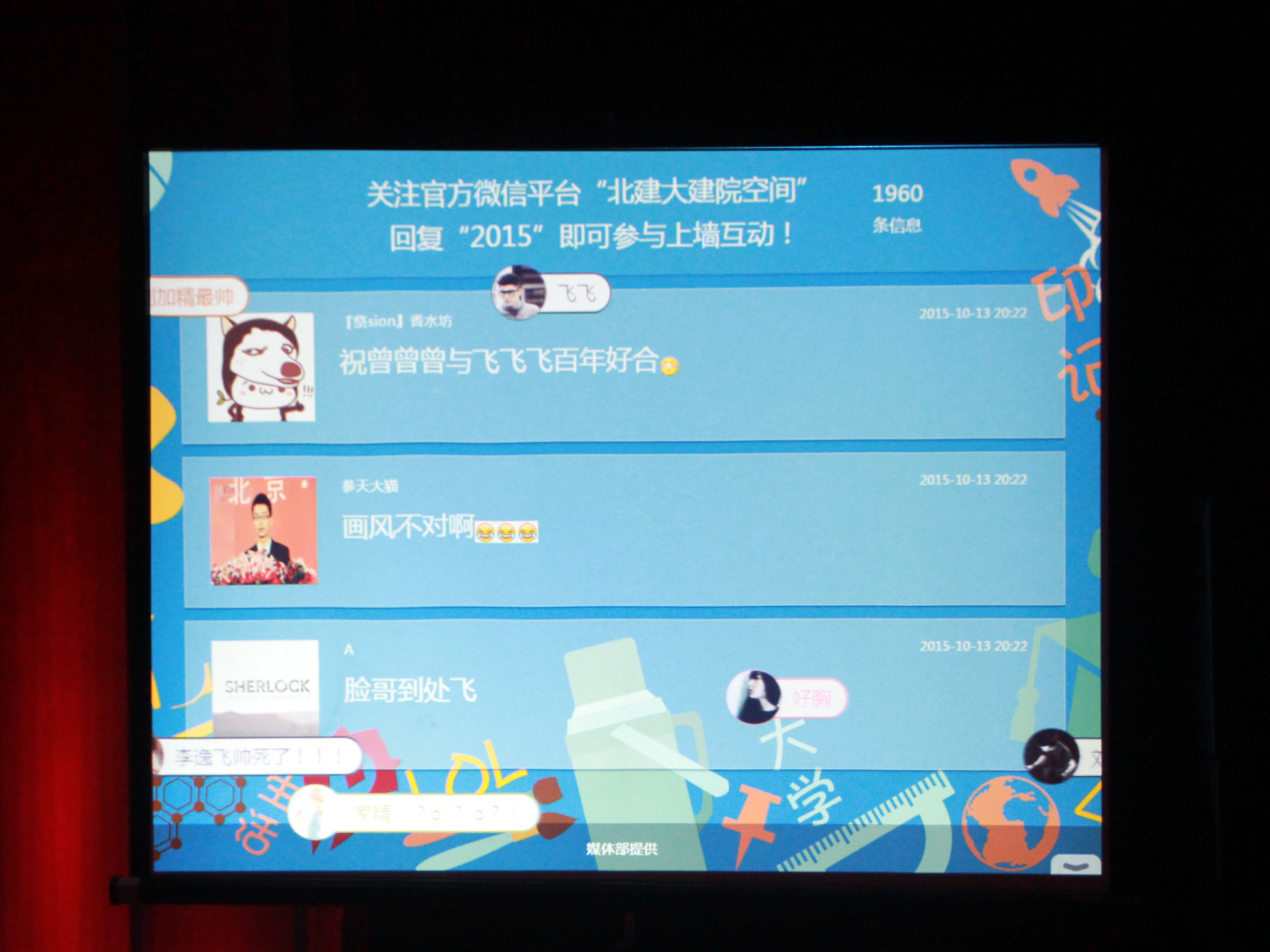 本次晚会最新亮点是开通了微信互动平台,台下同学积极参与平台互动,晚会现场共收到师生发送的互动微信于4000余条,同学们其乐融融,欢乐无限,极大地带动了现场气氛。
