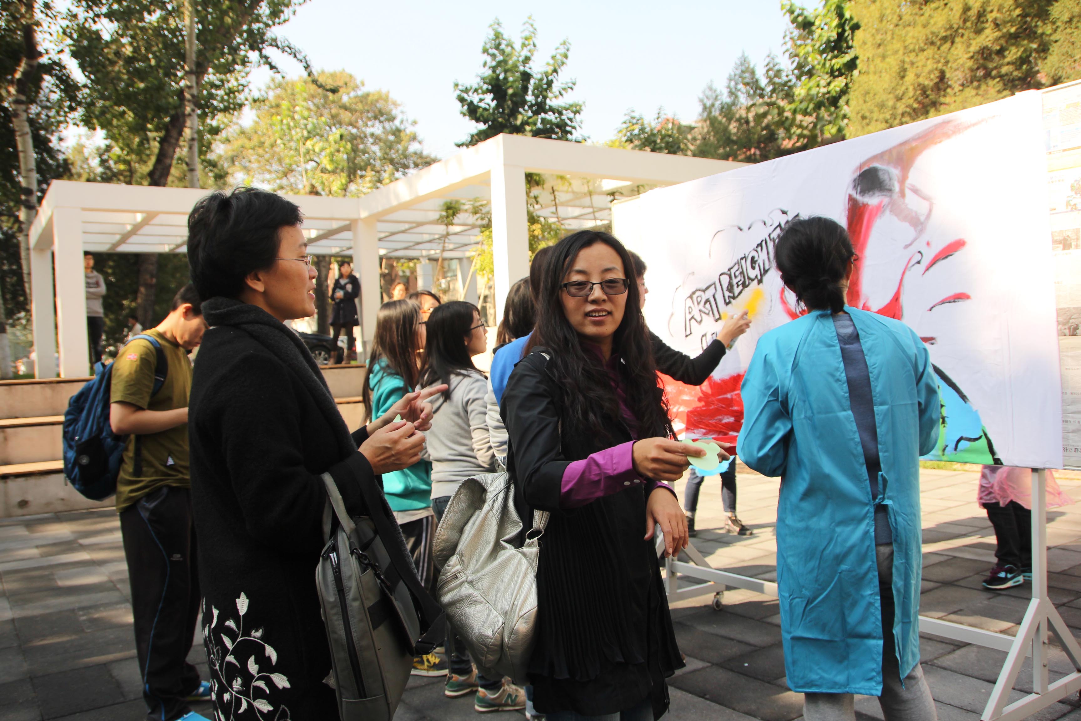 最终,历时三十分钟的涂鸦大赛落下帷幕。在现场活动的吸引下,大量老师和员工纷纷前来观战助威,现场气氛热烈,新生们热情高涨。