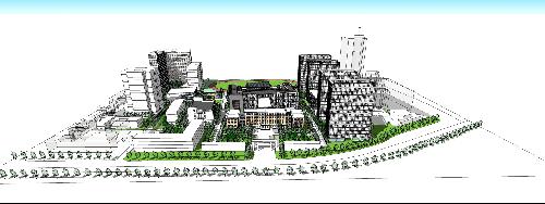 适度增加地上建筑面积,提高土地利用效率,延续中间低两边高的布局,突出中轴线关系,创造优美的天际线。