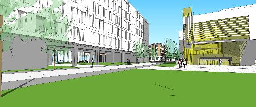 保护建筑——科研楼,将成为教学楼内部的一道靓丽景观。