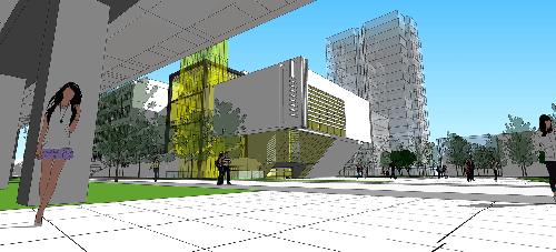 教学楼主入口由面向道路改为面向广场,有利于大量人流集散,减少对道路交通的干扰。巨大的入口形象增强了引导性及辨识度。