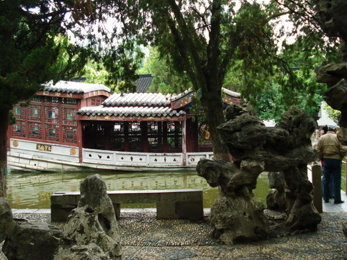 没有高山巍峨,没有波澜壮阔。这里只有几许假山,一方青塘。鱼儿游荡在水中,游人行走在岸上,建筑静立在两旁,这是园林的秀气与谐趣。