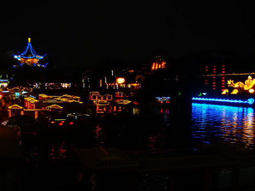 当夜幕完全压下,秦淮河两岸的灯火绚烂了起来,五彩斑斓装点着建筑的檐牙,勾勒出每一样景物的轮廓,显得格外繁华。人来人往,川流不息。我思慕的那个姑娘,也有如此热情的一面。