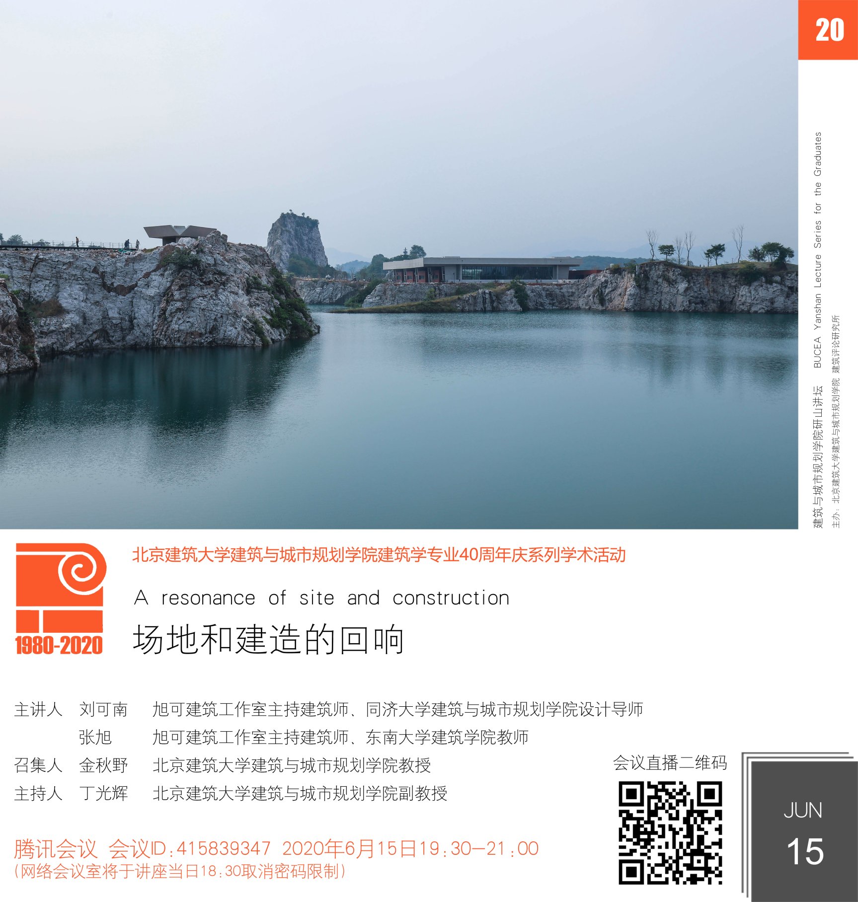 6月15日晚19:30,在腾讯会议与网络直播平台,mk体育研山讲坛第20期拉开帷幕。校内外师生、社会各界学者、实践建筑师等200余人参与本次讲坛。