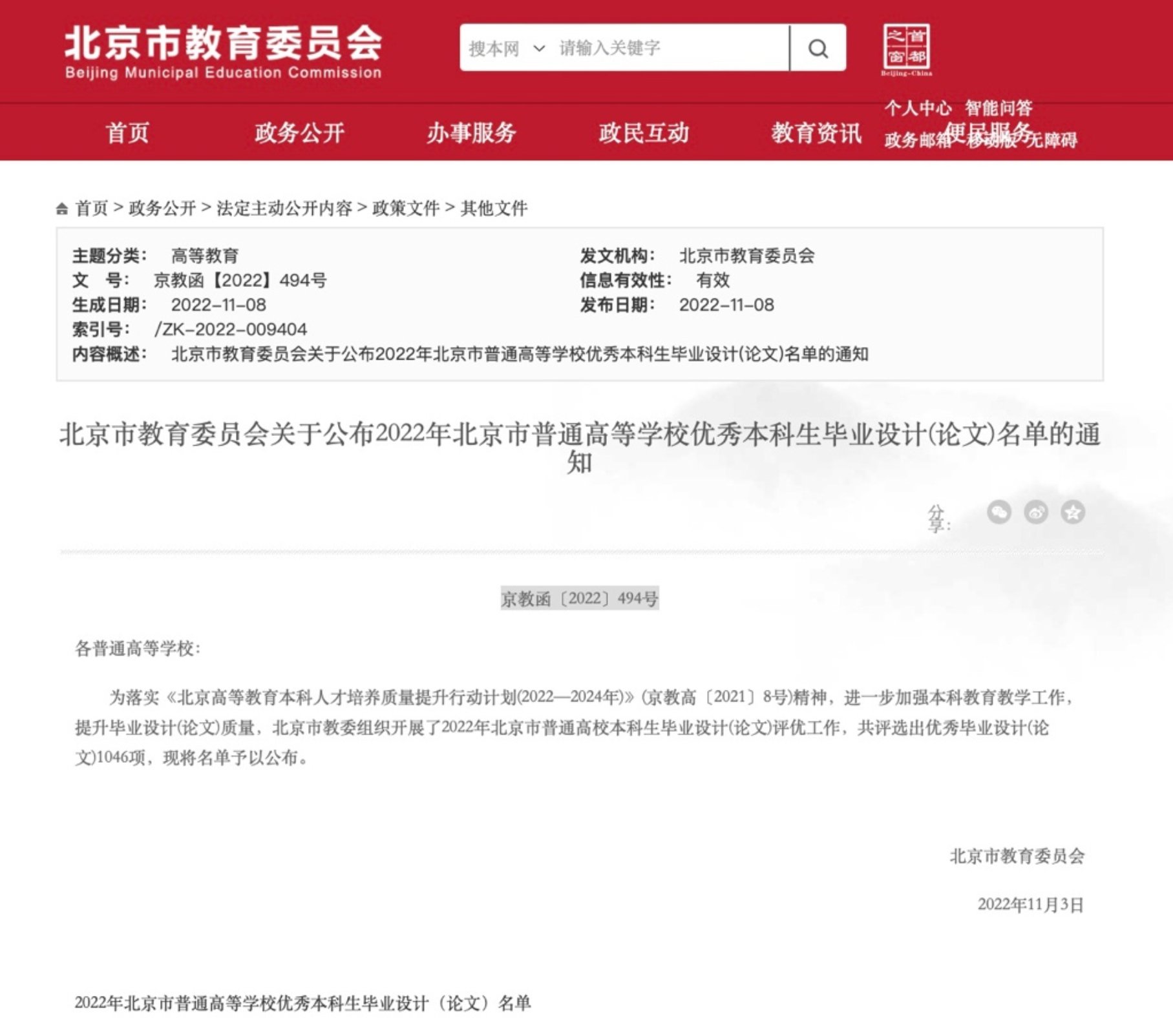 根据北京市教育委员会关于公布2022年北京市普通高等公司优秀本科生毕业设计(论文)名单的通知(京教函〔2022〕494号),公司mk体育荣获得两项优秀毕业设计大奖。