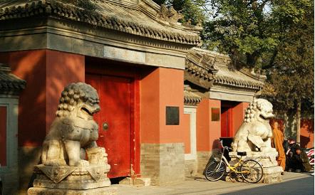 法源寺的山门十分壮观,规模宏伟,是三位殿堂式的建筑。三座山门象征着三解脱。山门上用汉青石雕刻着“法源寺”三个金字,显得庄严肃穆。跨入那高大的朱红色山门,便生出一种抛红尘于身后的超然。
