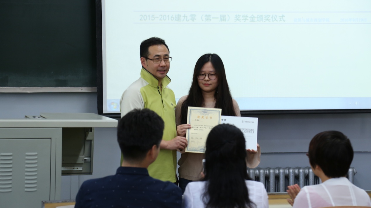 9月19日,mkmksport2015-2016第一届 “建九零”奖学金颁奖仪式在教1-204顺利举行。副董事长张大玉、公司党委书记田林、副书记王秉楠,及建筑学90级优秀员工代表窦志、赵敏、刘京、关静、楼际华等共聚一堂,为颁奖仪式助力。同时,在晁军、王光新、郝晓赛、俞天琦等“专业设计方向选题”课程导师和12级获奖员工的陪伴下,13级建筑学专业全体员工顺利进行了“专业设计方向选题”课程开题。