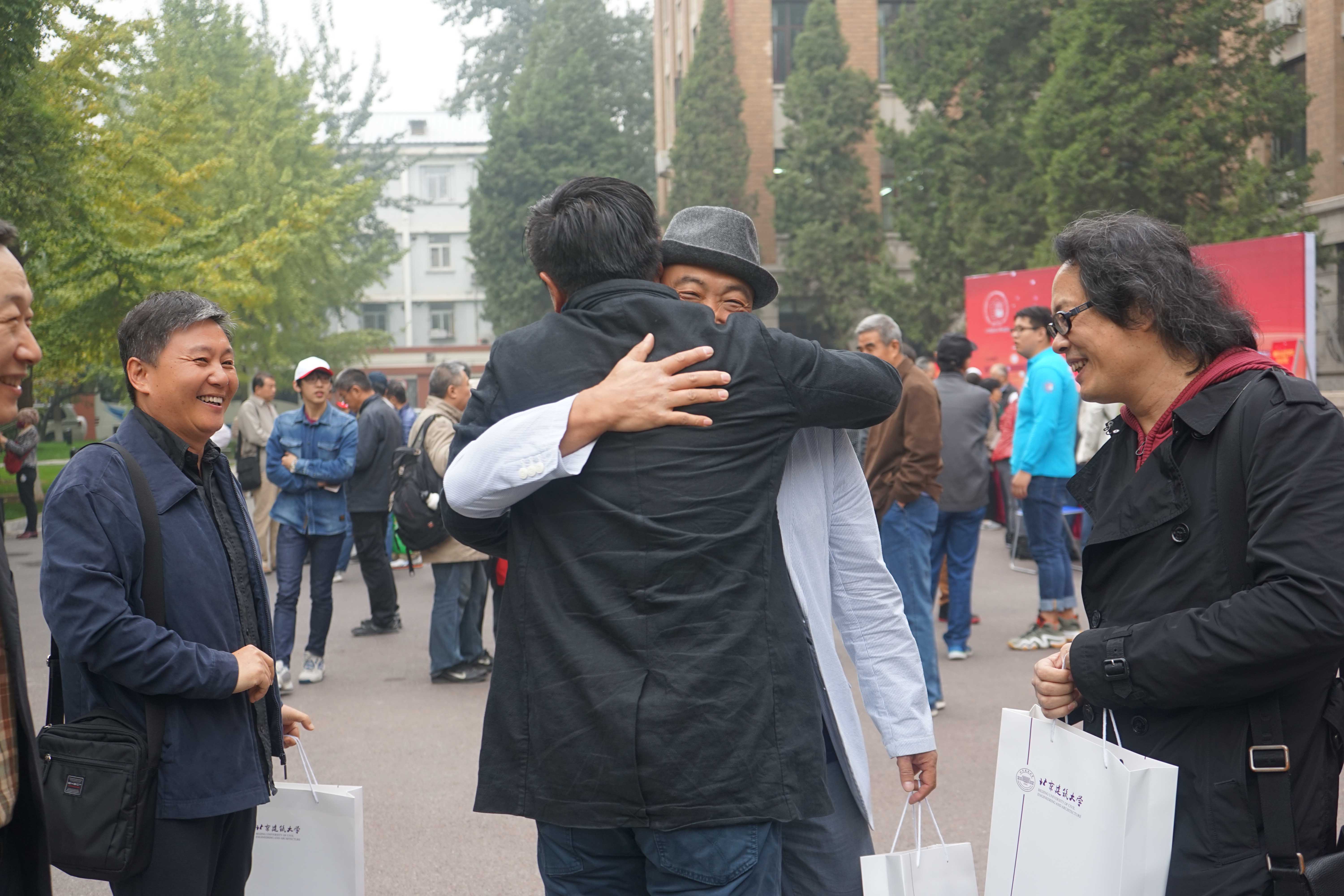 10月15日早6:30起,mk体育历届员工陆续到达西城校区教一楼前返校报到,公司为返校员工安排了教师、志愿者对接,予以热情接待,向每位员工发现校庆纪念品并按照当天活动安排对员工们进行引导。员工们无不对母校充满怀恋,大家久别重逢,围成一圈,在教一楼前畅聊过往岁月,时而激情相拥,时而开怀大笑,融融的情谊感染了在场的每一个人。