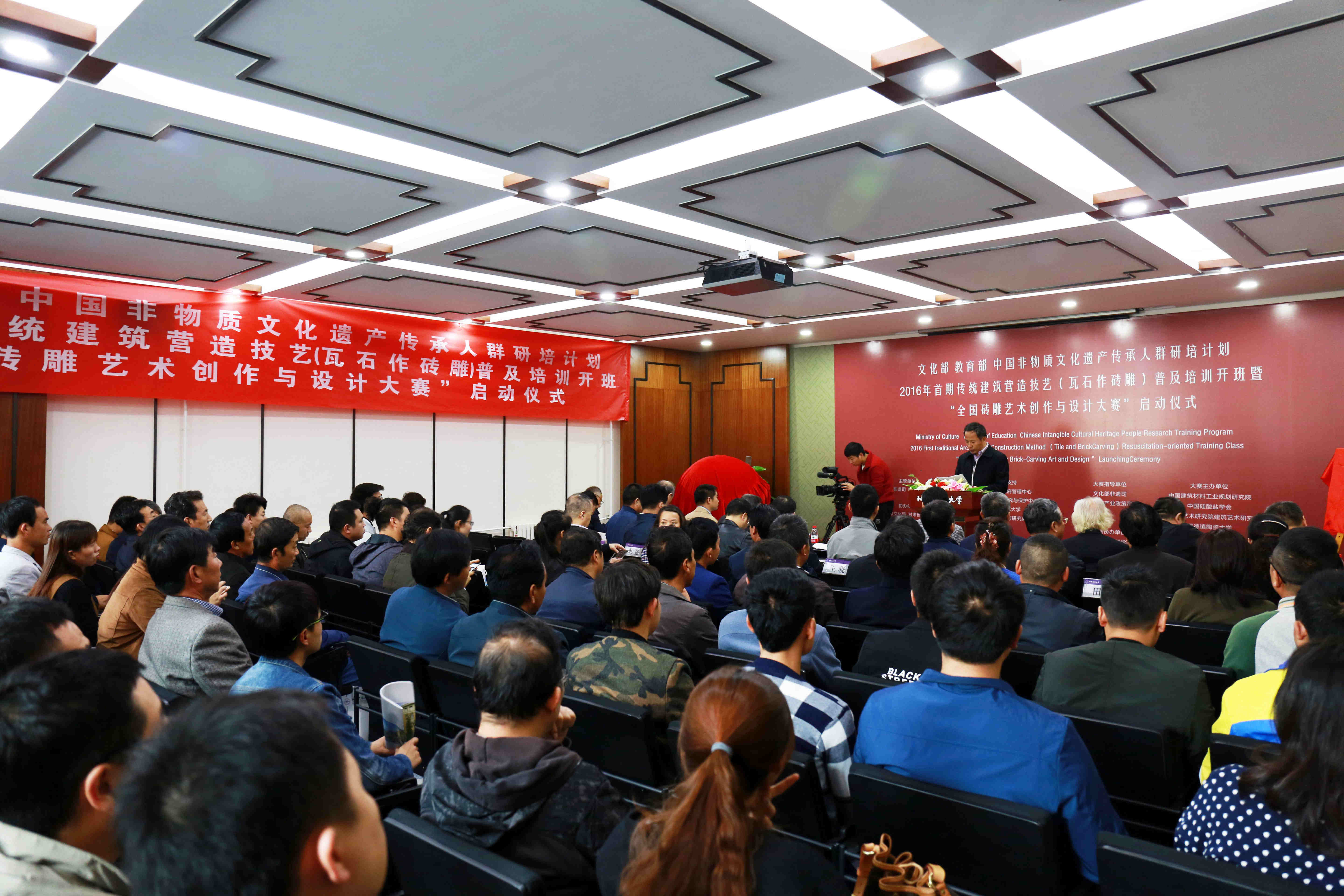 本次传统建筑营造技艺(瓦石作砖雕)普及培训班邀请了多位国内行业专家授课,培训内容以授课、案例教学与创作辅导相结合,在研培结束后学员将参加2016年全国砖雕艺术创作与设计大赛,并推荐优秀传承人参加2016年度砖雕大工匠评选,促进不同艺术流派砖雕技艺间的切磋交流。
