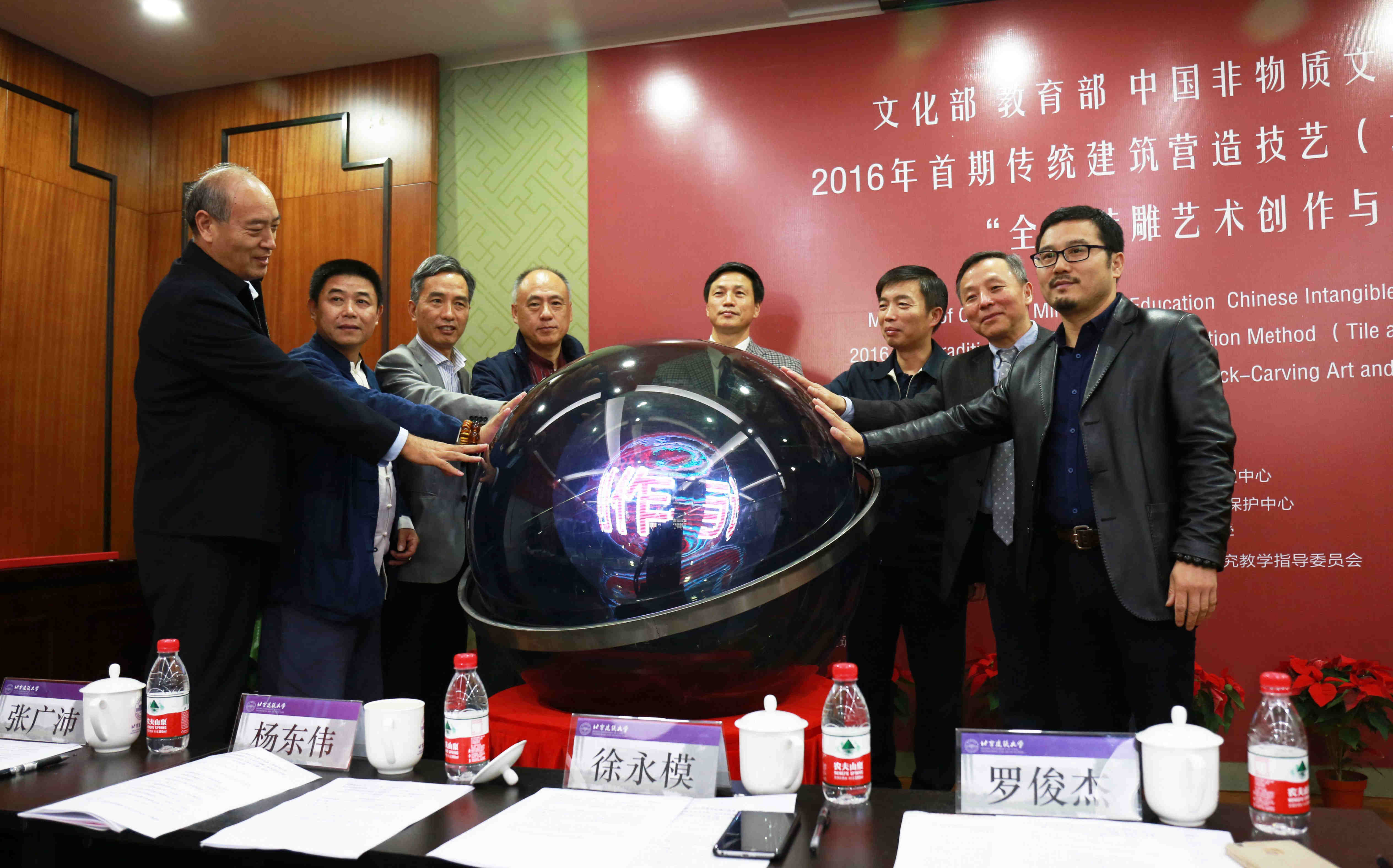 10月16日下午,在中国非物质文化遗产传承人群研培计划2016年首期传统建筑营造技艺(瓦石作砖雕)普及培训班开班暨“全国砖雕艺术创作与设计大赛”启动仪式上,由公司和文化部恭王府管理中心联合组建,并报经文化部非遗司批准的“中国非物质文化遗产研究院”正式挂牌成立,研究院将主要围绕传统建筑营造技艺、传统家具制作技艺开展相关研究工作。