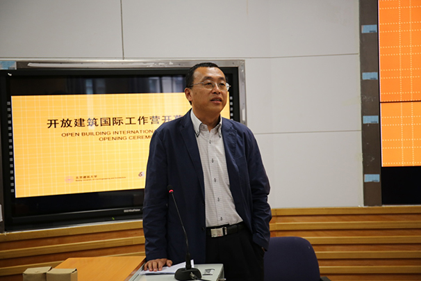 中国建筑标准设计研究院执行总建筑师、教授级高级建筑师刘东卫在致辞中,从两个方面讲述了什么是开放建筑和为什么要做开放建筑。一方面,开放建筑从上个世纪由清华大学从荷兰引进国内至今,已经成为了一个十分具有发展远景的行业。他强调,开放建筑事实上是“面向未来的一个广义开放的建筑学”,从方法论、居住论、设计论到建筑理论、技术理论乃至可持续发展理论,这些都属于这一学术领域的研究范围,这是一个开放的、系统的面向未来的建筑学问。另一方面,他就为什么要做开放性建筑这一问题结合浙江危房倒塌的例子强调作为开放建筑的研究人员,我们所能为国家做的,就是通过产业角度、技术角度和可持续发展角度为老百姓建造出更加牢固的、持久的适应性住宅。最后,他也表示作为本次工作营的指导教师之一将尽全力投入工作营的指导工作。