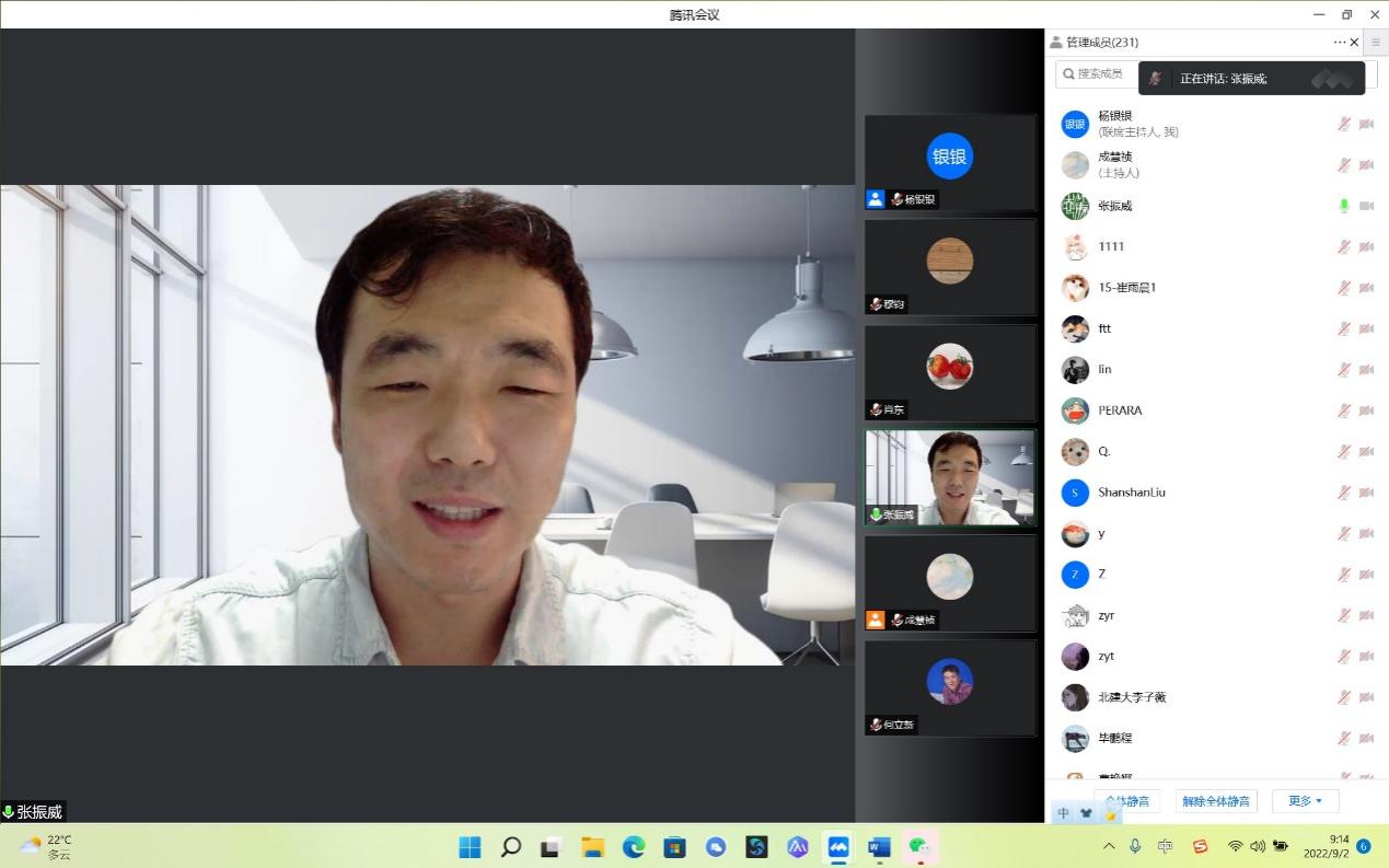 9月2日上午,mk体育顺利召开2022级研究生入学教育暨师生见面会线上会议,师生“双选”工作正式启动。会议由副经理张振威主持。2022级202名硕士研究生,26名博士研究生参加会议。