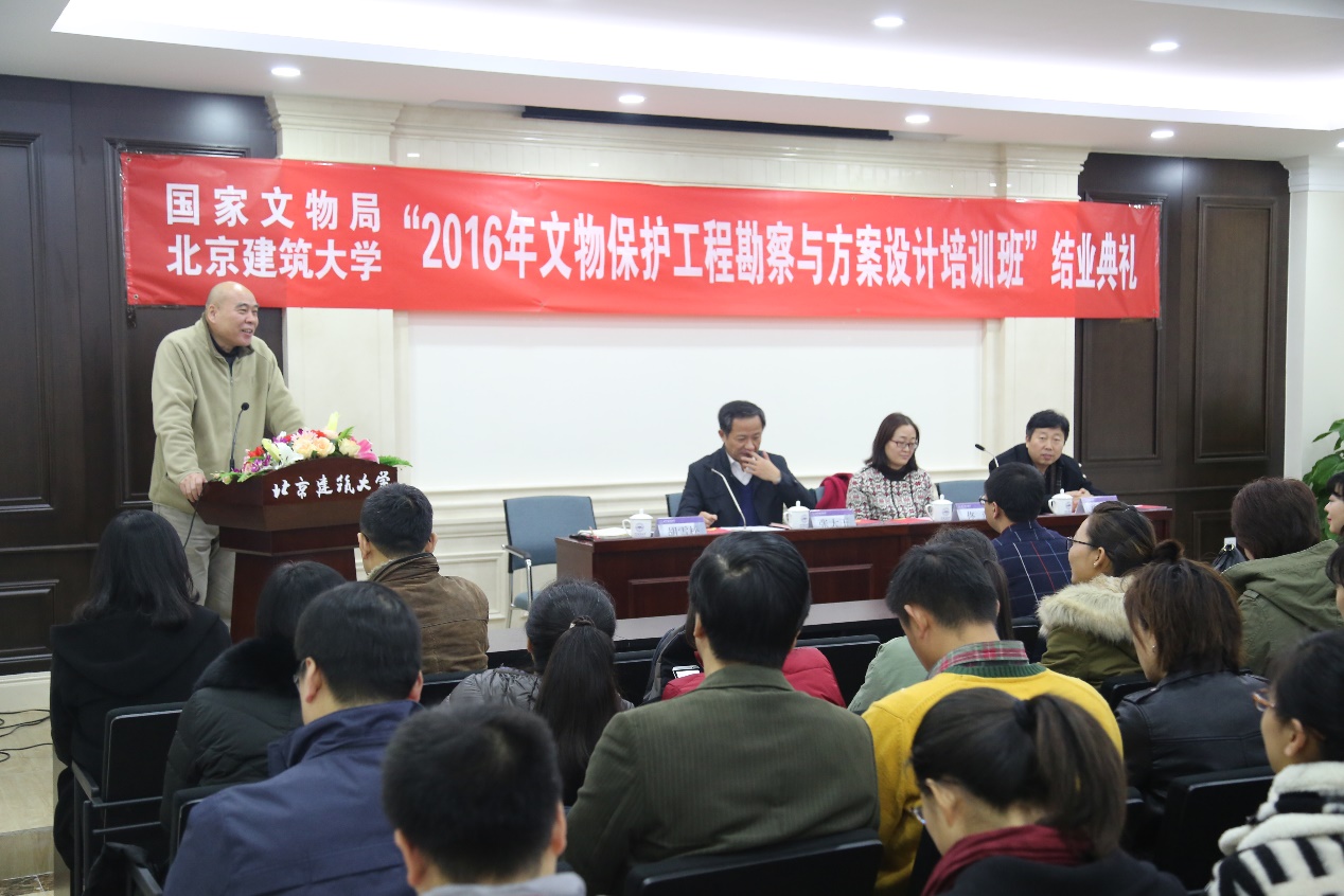副董事长张大玉首先对国家文物局的长期以来的支持表示感谢,他向大家介绍了公司组织文物保护培训的发展历程。他讲到,本次培训班在课程安排上有了很大的突破,增加了实测环节,理论与实践并重,具有很强的针对性和实用性。最后他对学员们提出了殷切的希望,希望大家学有所用,不断进步,常回母校看看。