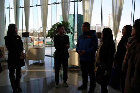 下午一点半,师生一行刚出通州北关地铁站,世茂集团侨商中心项目映入眼帘。步行约500米,到达侨商中心的售楼部,王英旭经理接待了公司师生。