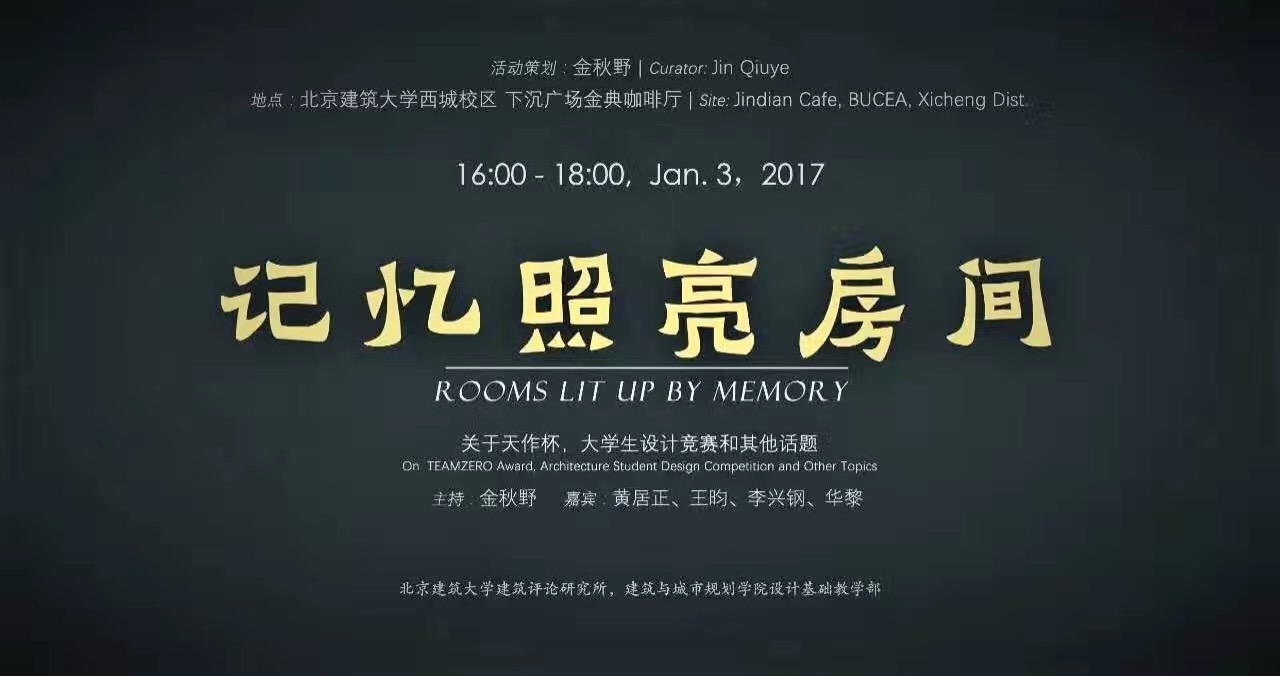 2017年1月3日16时,在mkmksport西城校区金点咖啡厅,由北京未来城市设计高精尖创新中心、mkmksportmk体育主办,mkmksport建筑评论研究所、mk体育团委承办的“记忆照亮房间”主题沙龙如期举行。此次沙龙活动由mk体育金秋野教授策划,参会嘉宾包括:mk体育副经理胡雪松、建筑学报主编黄居正,TAO迹建筑事务所创始人华黎,中国建筑设计研究院副总建筑师李兴钢,ADA研究中心主任王昀,北京建工建筑设计研究院副经理边志杰,同济大学出版社群岛工作室主持人秦蕾,以及公司青年教师程艳春、王韬、刘烨、丁光辉、郝石盟、黄庭晚、成慧祯等,沙龙由金秋野教授主持。沙龙现场大咖云集,各位主讲嘉宾均担任过各类设计竞赛的组织者、出题人或评委,此次沙龙主要以设计竞赛为中心展开讨论,分别就“如何面对竞赛”、“竞赛在学习中扮演的角色”、“竞赛与课程设计的关系”、“如何参与竞赛”、“一份好的竞赛作品是怎样的”、“竞赛所要传达的价值观”等议题展开讨论,旨在使同学们了解竞赛目的、摆正参赛心态,以及找准切入方向。