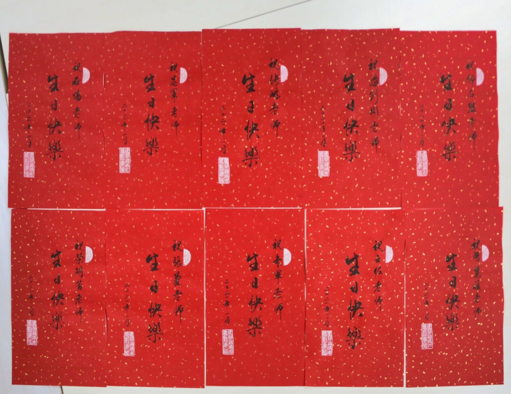 党委书记何立新为过生日的教职工送上了温暖的生日祝福,祝愿老师们幸福美满,好运吉祥。同时为每一位福星们准备了精心制作的DIY贺卡,让大家更是惊喜万分。大家纷纷拍照留念,定格幸福瞬间