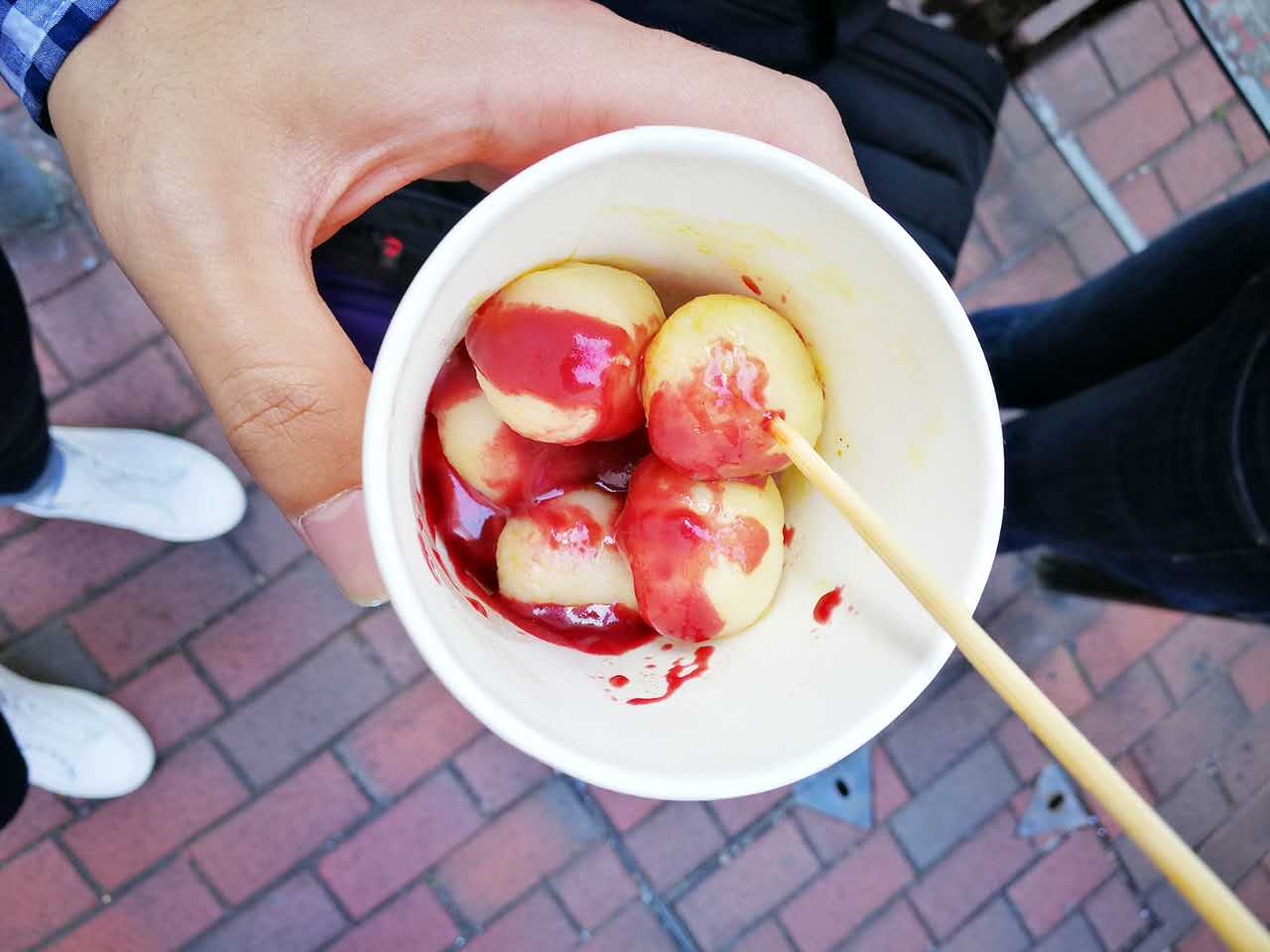 “你就找那个最凶的大娘,只能现金付的那种,去那里买到的鱼蛋是最好吃的。”