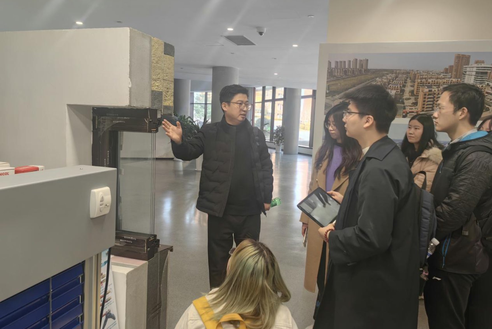 师生还考察了中德生态园的被动房中心。该中心是目前亚洲最大的被动房项目,获PHI被动房认证和国内绿色建筑三星认证,设计人员详尽地介绍了建筑的节点构造、材料应用、遮阳构件等具体技术措施,现场教学有效帮助同学们将学到的绿建书本知识与真实建造建立了连接。