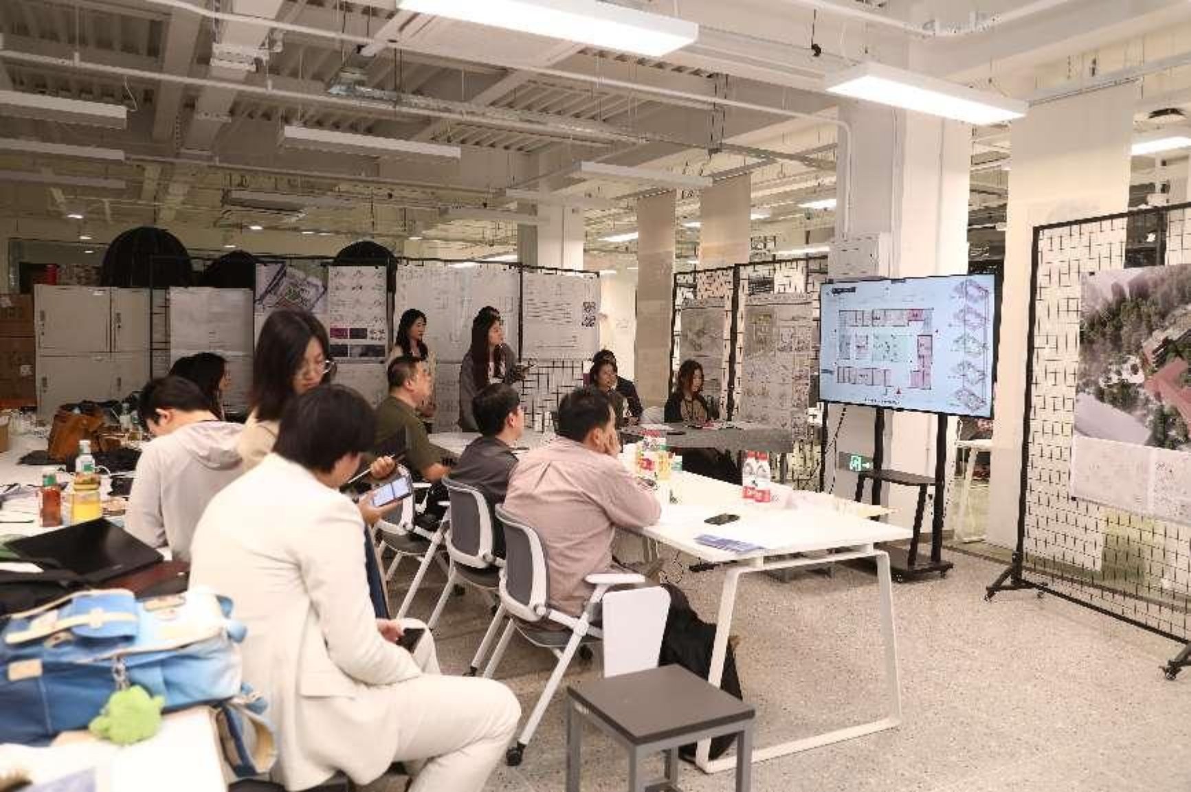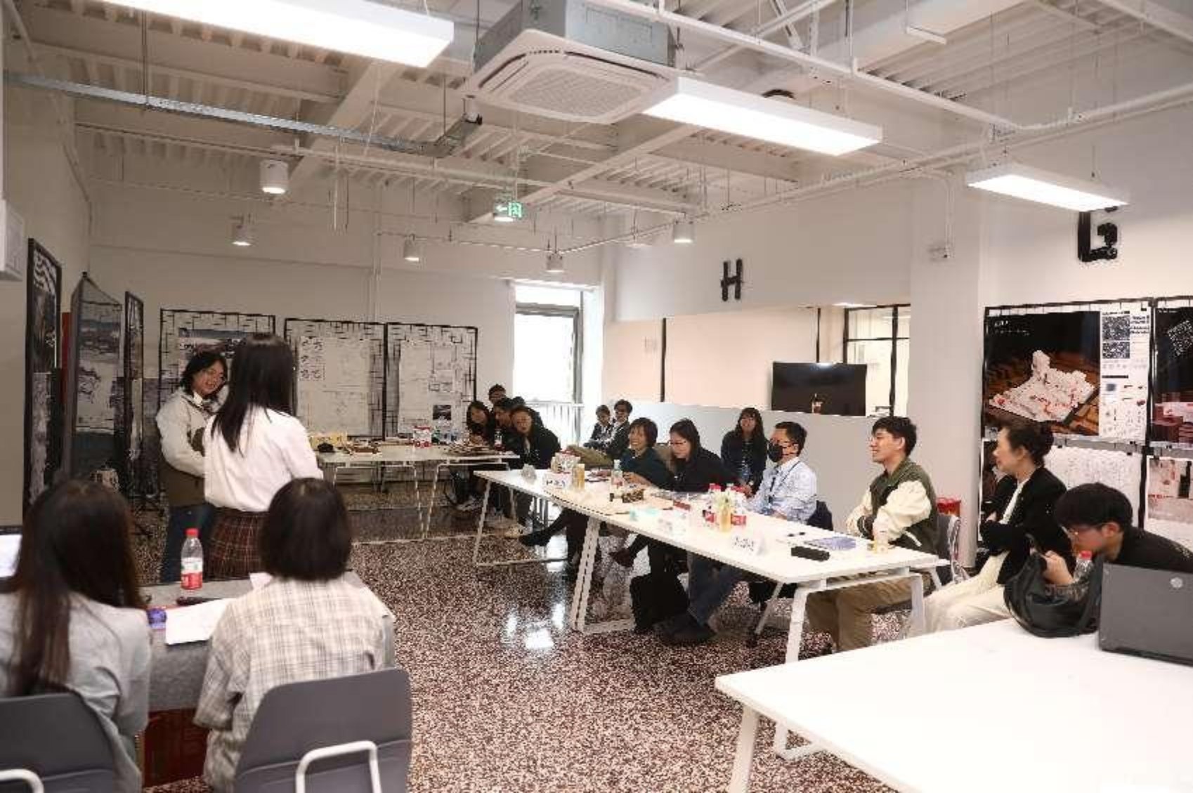 下午,48组同学分为由不同高校组成的7个小组进行本次联合毕设的中期答辩,以促进各校师生之间的相互交流。各组同学就前期调研、设计概念、城市设计、建筑单体设计进行汇报,答辩评委分别点评并就方案优化提出建议。
