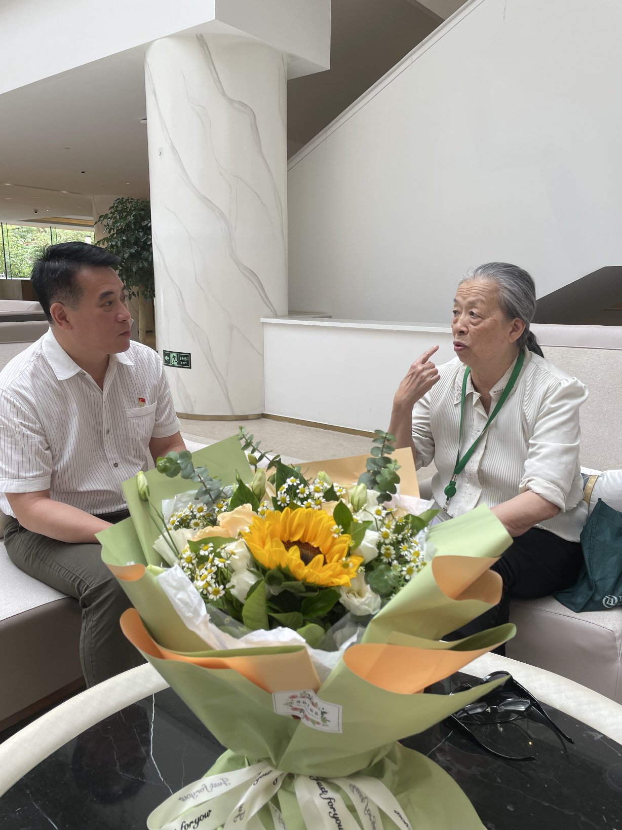6月18日,建筑与城市规划公司党委书记何立新带队前往“首厚大家”敬老院看望“光荣在党50年”老党员朱霭敏老师并为她颁发“光荣在党50年”纪念章。mk体育专职组织员、党政办主任、退休党支部书记随行。