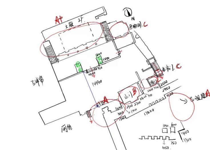 调研第二天,三位老师分别带队指导张壁村和大靳村的同学进行建筑测绘工作。在测绘公司提供的点云数据的基础上,进行古建筑结构关系梳理、关键构造采集及大样记录。尽管天气炎热,尤其大靳村当地条件比较落后,但老师和同学们仍然坚持完成各自的任务。老师向同学们讲解了建筑测绘的基本知识和技能,并指导他们使用测量工具和软件进行实际操作,对建筑结构等提出建议。学工王思远老师也全程参与,关心员工们的生活与安全。