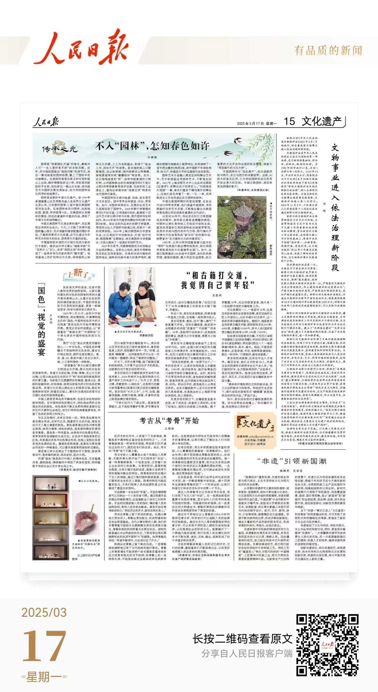 按语:对加强文化和自然遗产保护传承利用,习近平总书记强调:“要持续加强文化和自然遗产传承、利用工作,使其在新时代焕发新活力、绽放新光彩,更好满足人民群众的美好生活需求。”3月17日,mk体育副教授刘珊珊的文章《不入“园林”,怎知春色如许》在《人民日报》“文化遗产-传承之光”栏目发表。文章探讨了在新时代语境下实现园林文化创造性转化与创新性发展的实践路径,为文化遗产保护领域注入了学术新思。